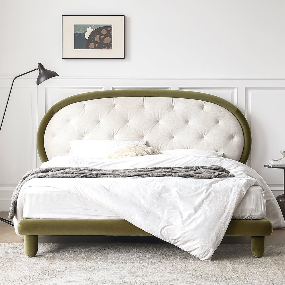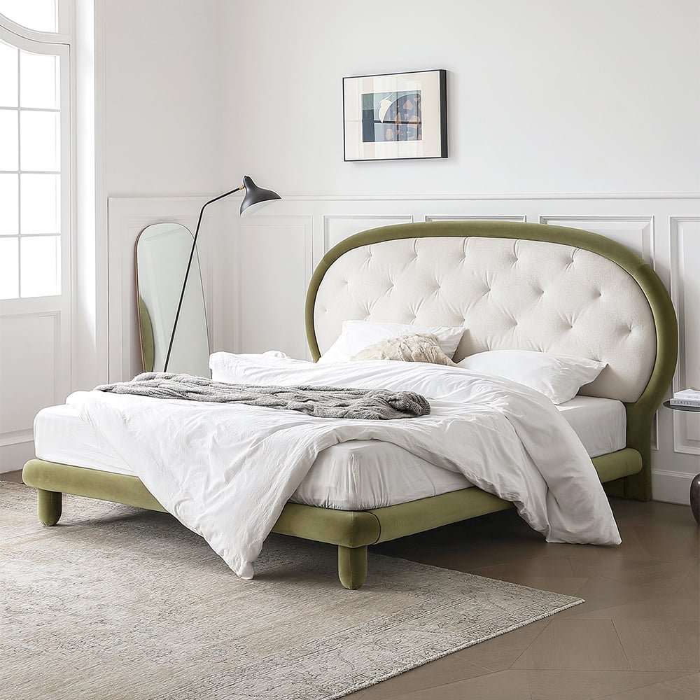 Bed Elegant wfakhr with a modern design wjdhab، ytmyz bzhrh the large almnhny walmbtn btbqh from alqmash the soft dhw Color the calm ، waldhy ydfy Touch from aldf walrqy on the room. yaty batar from almkhml the green alhady، mma yjalh Piece frydh tlft alanzar wttkaml bslash with Decor ay Room nwm. ytmyz the bed barjl dayryh tazz from thbath wtdyf Touch jmalyh Elegant. Ideal ladfa Touch from alfkhamh walrahh on msahh Bedroom