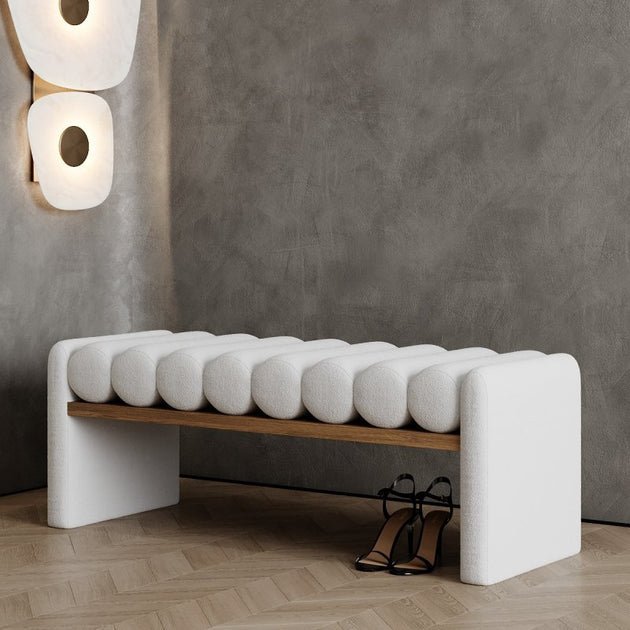 “adf Touch from almrh the art walanaqh almaasrh aly mdkhlk، Room mayshtk، aw Room nwmk with hdha the bench alfryd، Decor design tjma byn Comfort the attractive waljmalyh almbtkrh. ytmyz the bench bsf from krat mnfwshh wnaamh mghtah bqmash the boucle the luxury ، mma ywfr tjrbh jlws Comfortable and distinctive. tstqr hdhh balls on qaadh Wooden dafyh، wtdamha arjl smykh with a modern design mghtah bnfs qmash albwklyh، mma ykhlq twaznًa bsryًa rayaًa byn Materials walashkal. design hdha the bench la yjalh mjrd Seat wzyfy، bl Piece Artistic tdyf tabaًa shkhsyًa wlmsh from aldf walanaqh ghyr altqlydyh aly ay msahh. astkhdmh kmqad Elegant and almdkhl، aw kadafh Distinctive for the living room aw bedroom، wastmta balrahh waltsmym aldhy ylft alanzar.