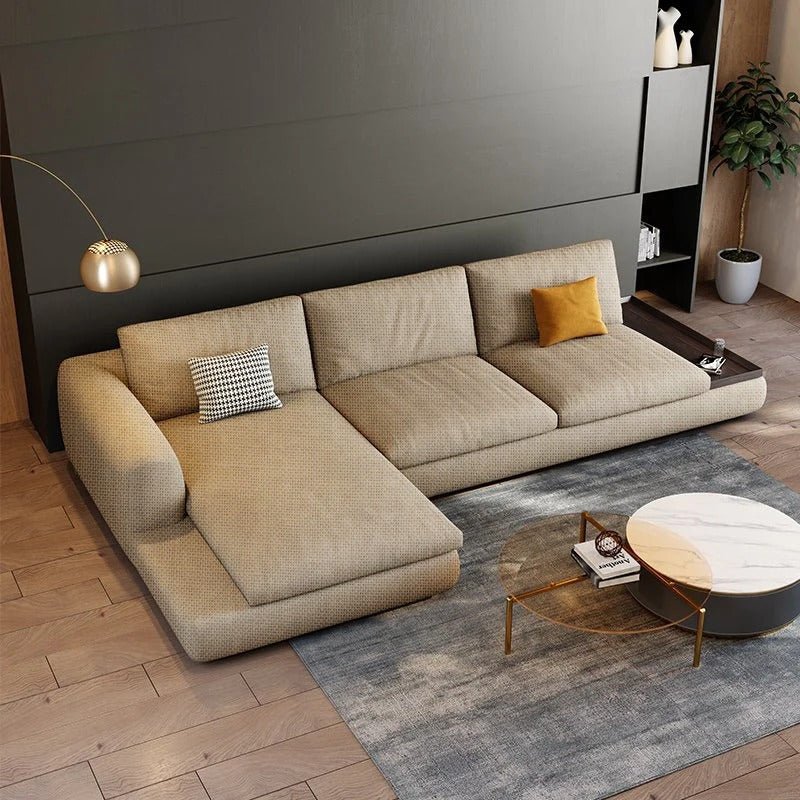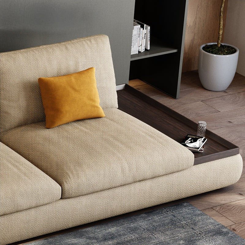 أريكة عصرية بتصميم بسيط وأنيق، تتميز بمقاعد واسعة ومريحة وألوان دافئة تناسب مختلف أنماط الديكور. مصنوعة من خامات عالية الجودة توفر الراحة والمتانة، وتأتي بمسند ذراع طويل يوفر مساحة إضافية للاسترخاء. مثالية لغرف المعيشة العصرية، حيث تضيف لمسة من الفخامة والتناسق إلى المكان