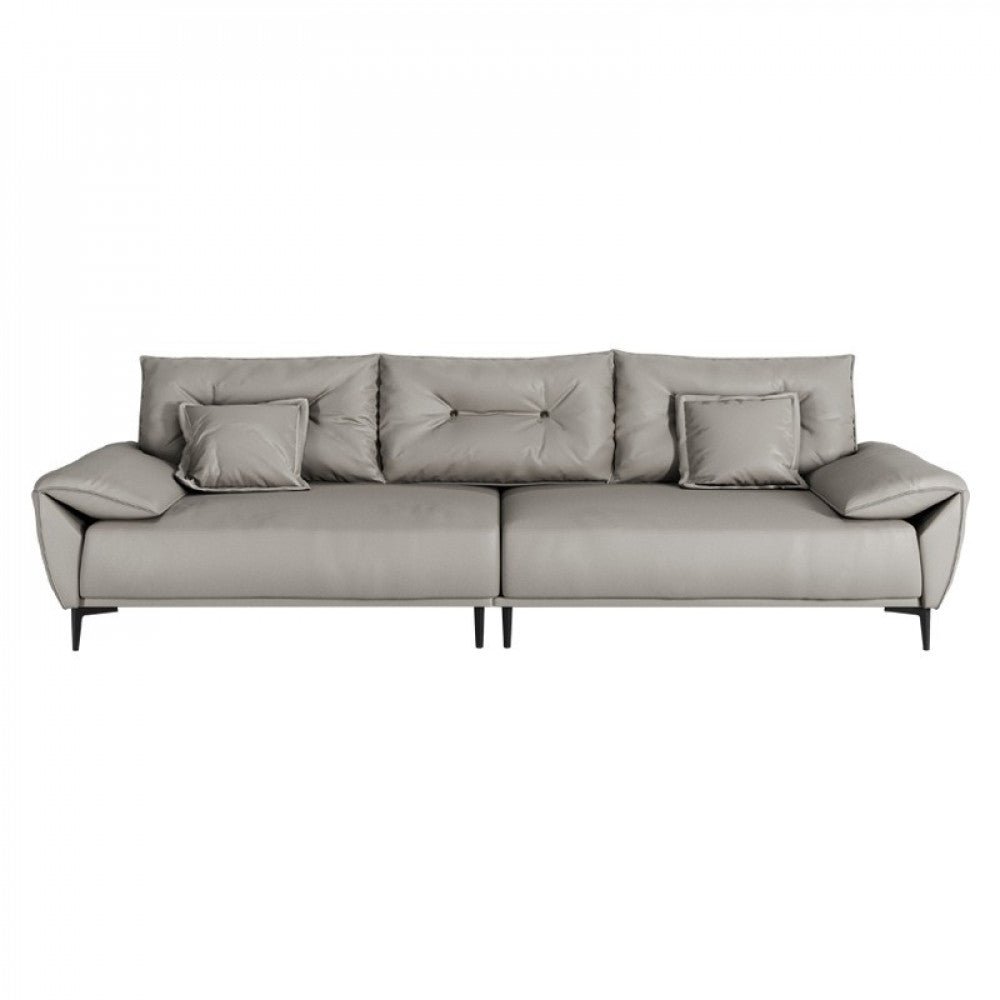 اريكة ثلاثية بتصميم عصري وجذاب، حيث يتميز تصميمها بالأناقة والراحة والتناسب مع الديكورات الحديثة، وتأتي بمقاسات مناسبة لاستيعاب عدد من الأشخاص، حيث يبلغ عمق الاريكة 95 سم وعرضها 220/260/280 سم وارتفاعها 85 سم. وتتوفر باللون الرمادي