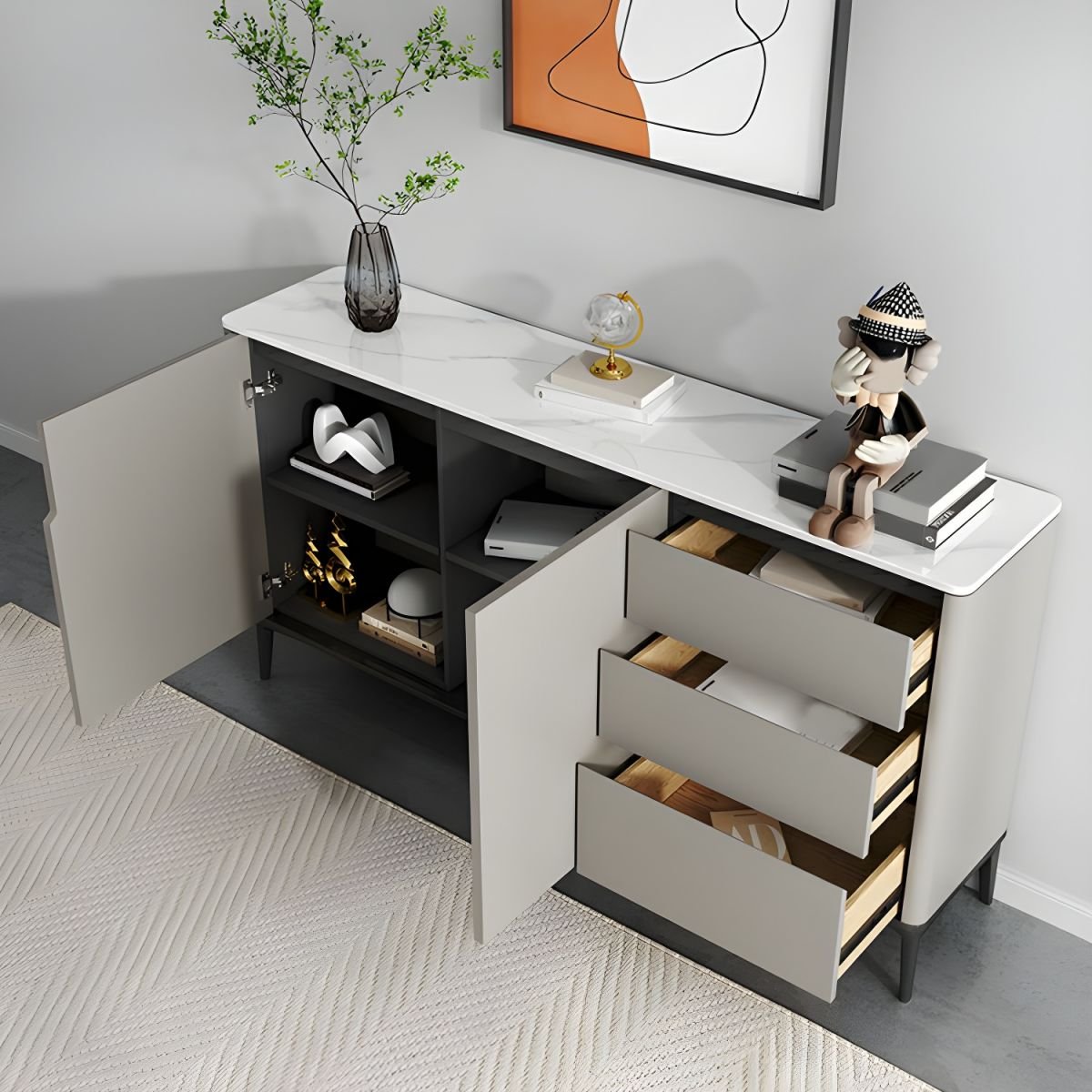 بوفية بنمط فرنسي فاخر هو قطعة أثاث تتميز بالفخامة والأناقة التي تعكس التصميم الكلاسيكي الفرنسي الراقي.خزانة ذات تصميم عصري , انها اختيارك المميز والحل السحري الفعال لك ولمنزلك , وذلك بفضل مزجها بين الأستخدام العملي والجمال , حيث تحتوي علي مساحات تخزينية تكفي كافة إستخدامك اليومي , مع خامات هي الأفضل من نوعها , مع الوان تتناسب مع جميع الديكورات والمنازل