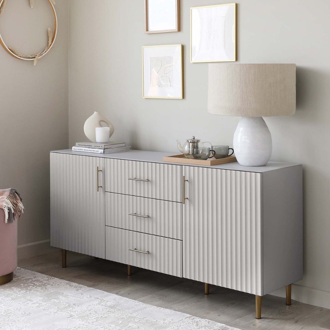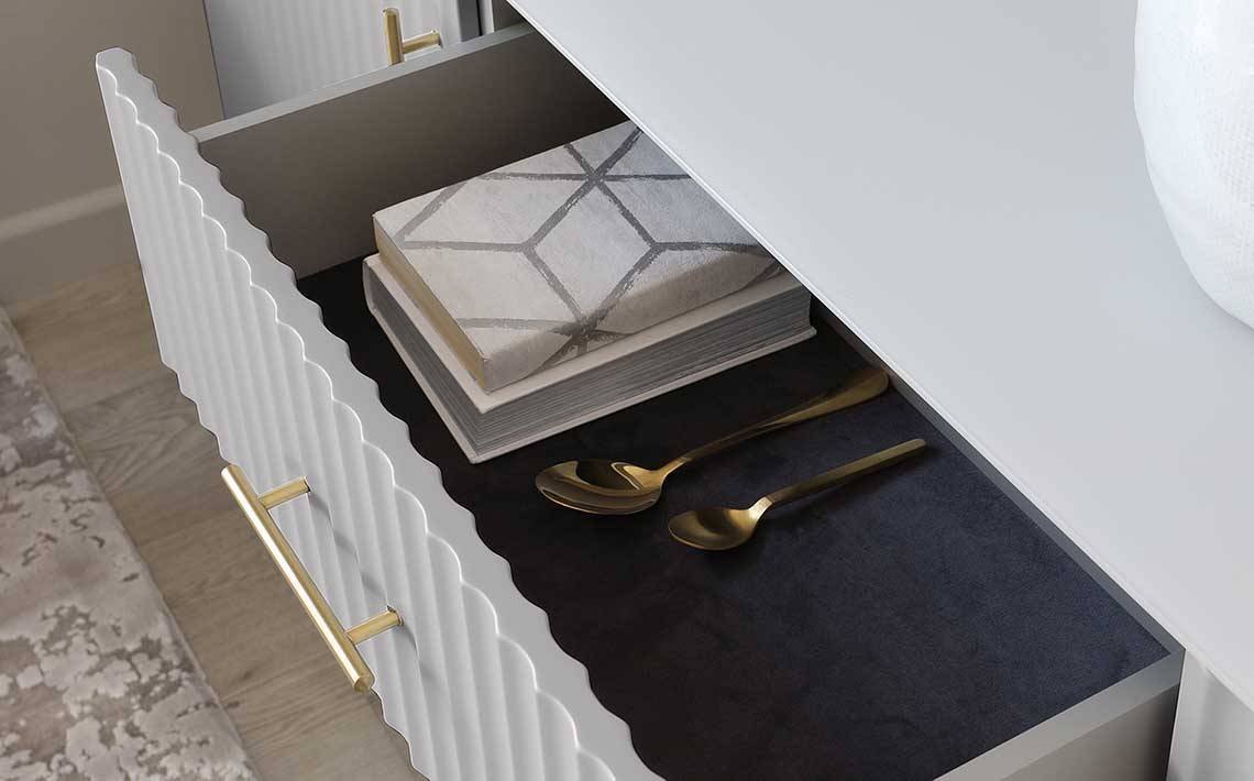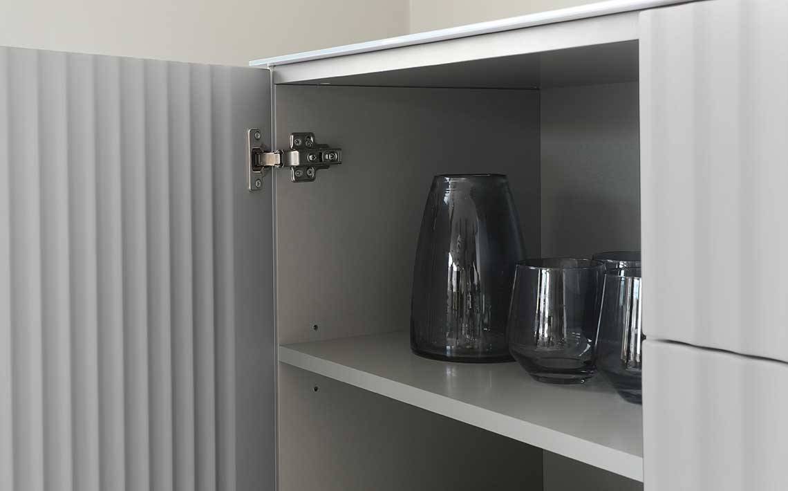 يتميز هذا البوفيه بإضفاء لمسه من الأناقه على أي غرفه بالمنزل سواء كان غرفة الطعام أو غرفة المعيشه . بفضل تفاصيلها المميزه و تداخل اللون الذهبى مع الرمادى الفاتحه منحها رونقاً خاص بها . كما أنها من الناحيه العمليه فهى تمتاز بمساحه داخليه واسعه مع أستخدام أجود انواع الخشب فى تصنيعها ..