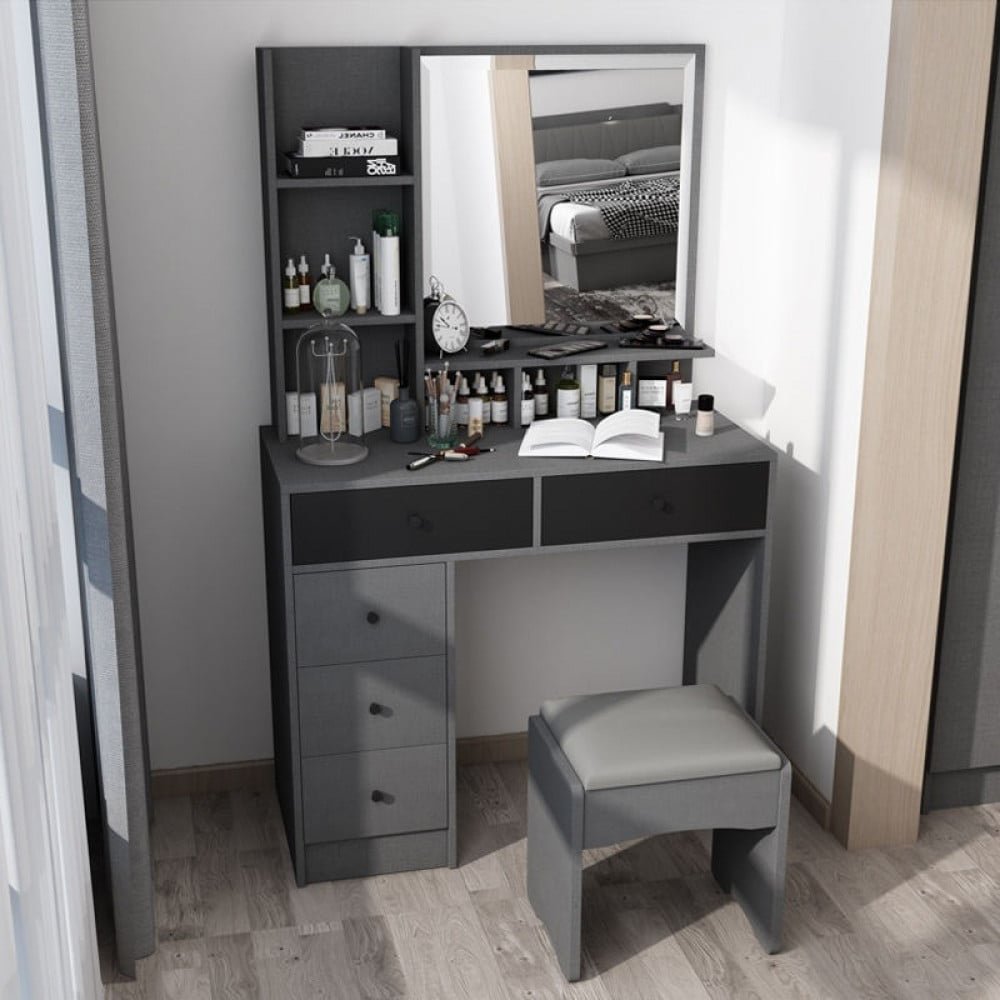 هذه تسريحة خشبية حديثة مصنوعة من أجود الخامات باستخدام خشب ام دي اف عالي الجودة. وهي مثالية لأي غرفة نوم تبحث عن الأناقة والفخامة. تأتي هذه التسريحة مع مرأة وأدراج للتخزين لتوفير مساحة أكبر لتنظيم المكياج والمجوهرات والمستحضرات الخاصة بك. بالإضافة إلى ذلك، يتميز هذا المنتج بتصميم عملي وجميل يتناسب مع أي ديكور داخلي، كما تتوفر بمقاس يلائم جميع الغرف. استمتع بإضفاء الأناقة والاهتمام بالتفاصيل على غرفتك الخاصة مع هذه التسريحة الخشبية الحديثة .