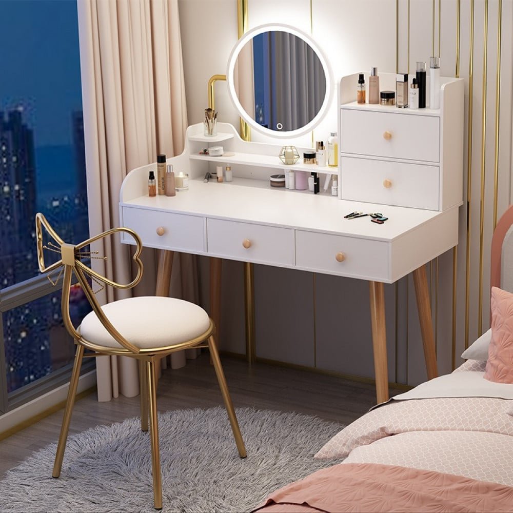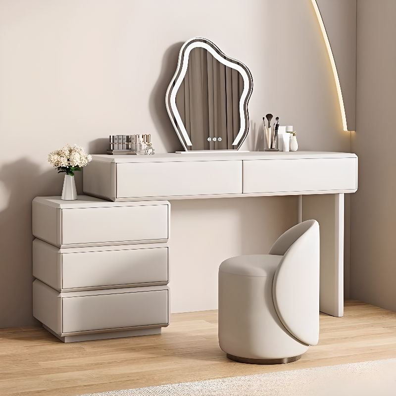 أضف لمسة من الأناقة والرقي إلى غرفتك مع هذه التسريحة الخشبية باللون الأبيض النقي. تتميز بتصميم عصري وبسيط يلائم كافة الديكورات الداخلية ويضفي لمسة من الإشراق والتنظيم على مساحة غرفتك. يأتي التصميم بخطوط نظيفة وبسيطة ليمنح التسريحة مظهراً حديثاً يناسب جميع أنماط الأثاث. مصنوعة من الخشب المتين عالي الجودة ليدوم طويلاً مع استخدام يومي