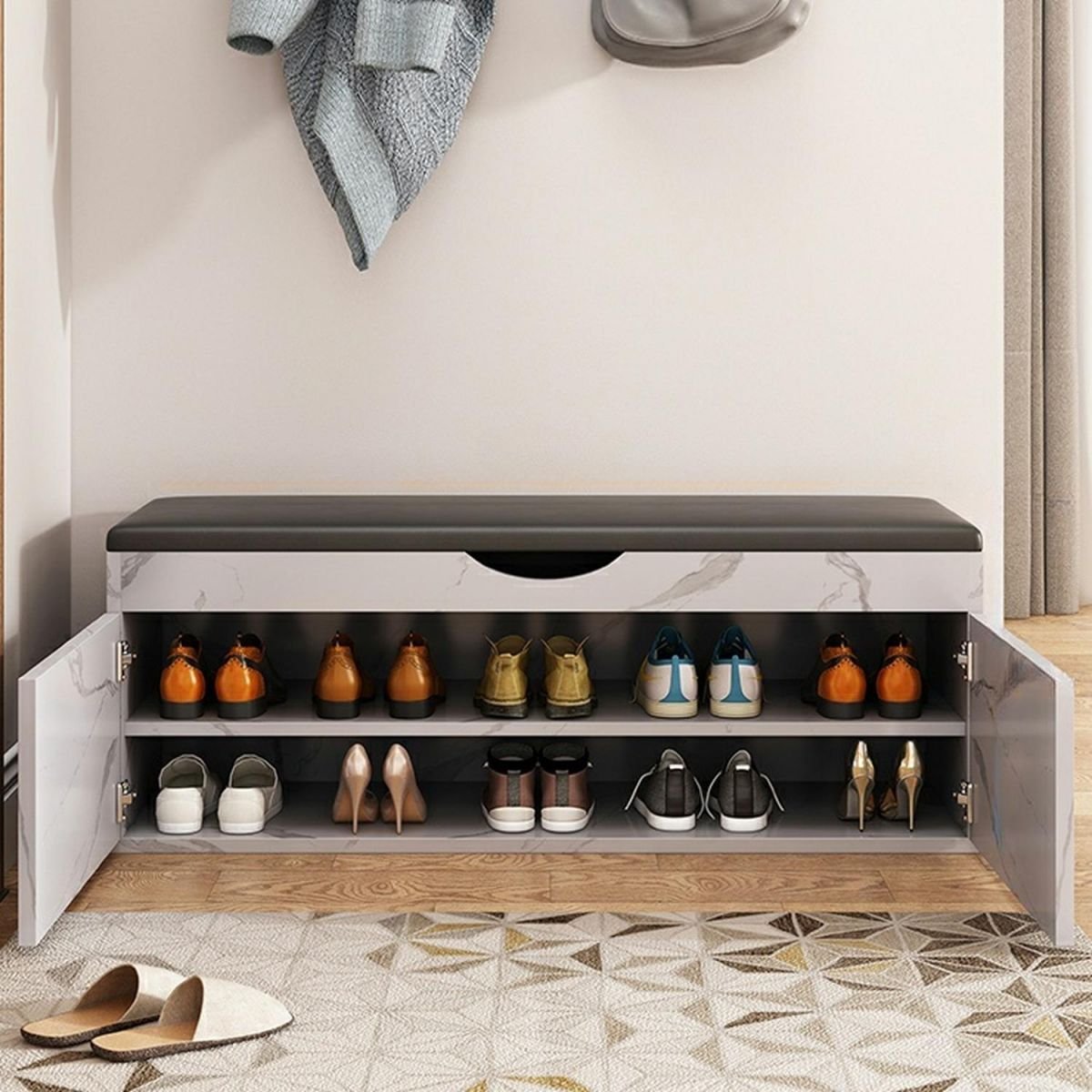 ارتقِ بديكور مدخلك مع وحدة التخزين الجذابة هذه، التي تمزج بين الرفاهية والوظيفة. تتميز الخزانة بتصميم أنيق يغلب عليه نمط الرخام العصري، مع سطح علوي مزود بـ مقعد مبطن ومريح باللون الداكن للجلوس أثناء ارتداء الأحذية. تنفتح الخزانة بأبواب جانبية لتكشف عن أرفف داخلية واسعة، توفر حلاً مثالياً لتنظيم وتخزين عدد كبير من الأحذية بعيداً عن الأنظار. هذه القطعة ليست فقط لتنظيم الأحذية، بل هي إضافة فاخرة تخدم كعنصر ترحيبي في المدخل. متوفرة بألوان متعددة لتناسب ذوقك، بما في ذلك التصميم الرخامي باللون الأبيض الأنيق أو اللون البني الدافئ، لتوفر لك التنظيم والراحة والفخامة في آن واحد.