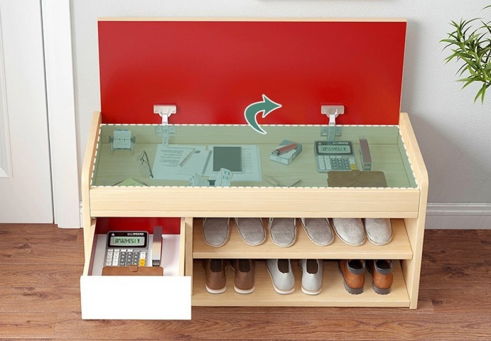 تصميم عصري وعملي يجمع بين الراحة والتخزين اجعل مدخل منزلك أكثر ترتيبًا مع هذا المقعد الذكي الذي يوفر لك مساحة تخزين مثالية للأحذية، مع مقعد مبطن مريح للجلوس أثناء ارتدائها أو خلعها . مزود بمساحه واسعه داخليه كبيره تتسع لعدة أزواج من الأحذيه مع درج جانبى صغير لحفظ المفاتيح، الإكسسوارات أو الأغراض الصغيرة