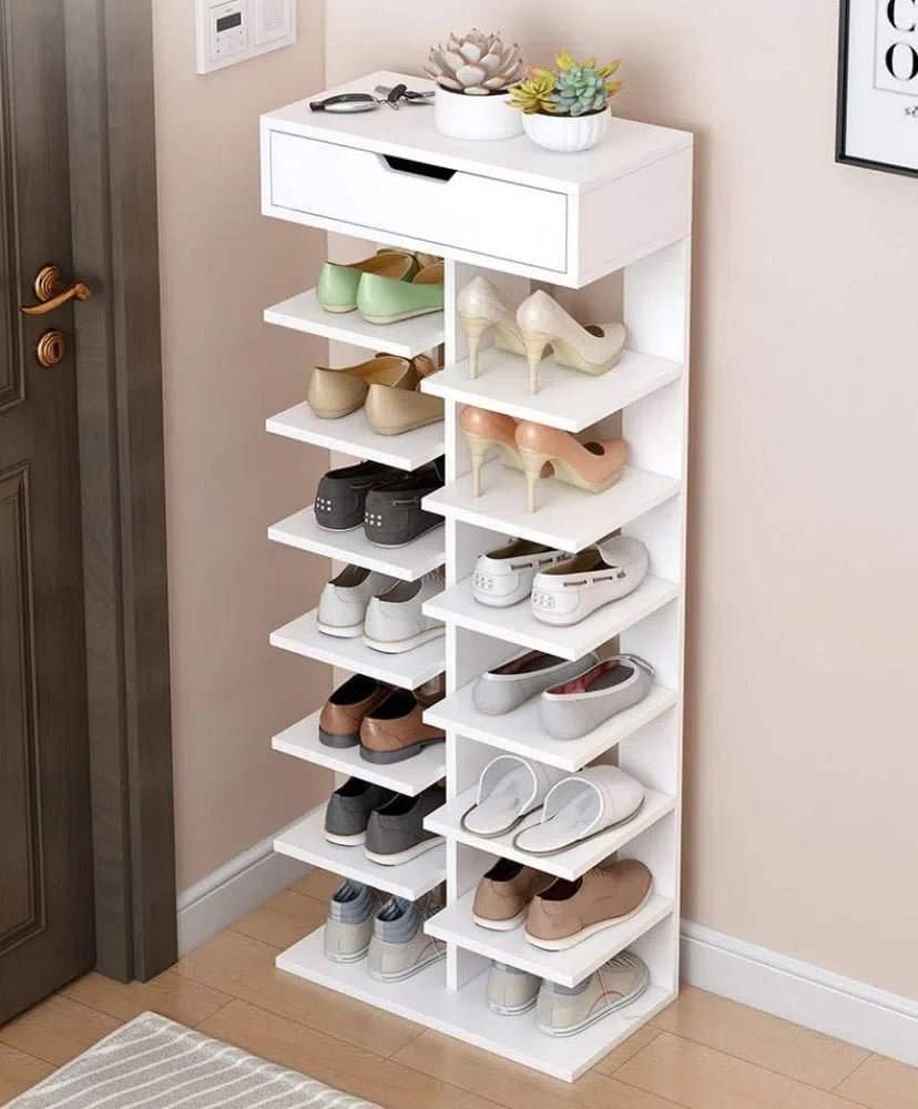 خزانه احذيه من عدة ارفف من الواح خشب mdf المعروف عنه جودته العاليه و شدة صلابته و هي متوفره ب اكثر من لون يمكنك الاختيار بينهم و هما ( ابيض – بنى ) و مقاس و احد مناسب لجميع المساحات الكبيره و الصغيره و هو ( ارتفاع 125 سم و عرض 60 سم و عمق 30 سم )