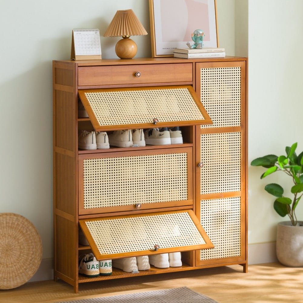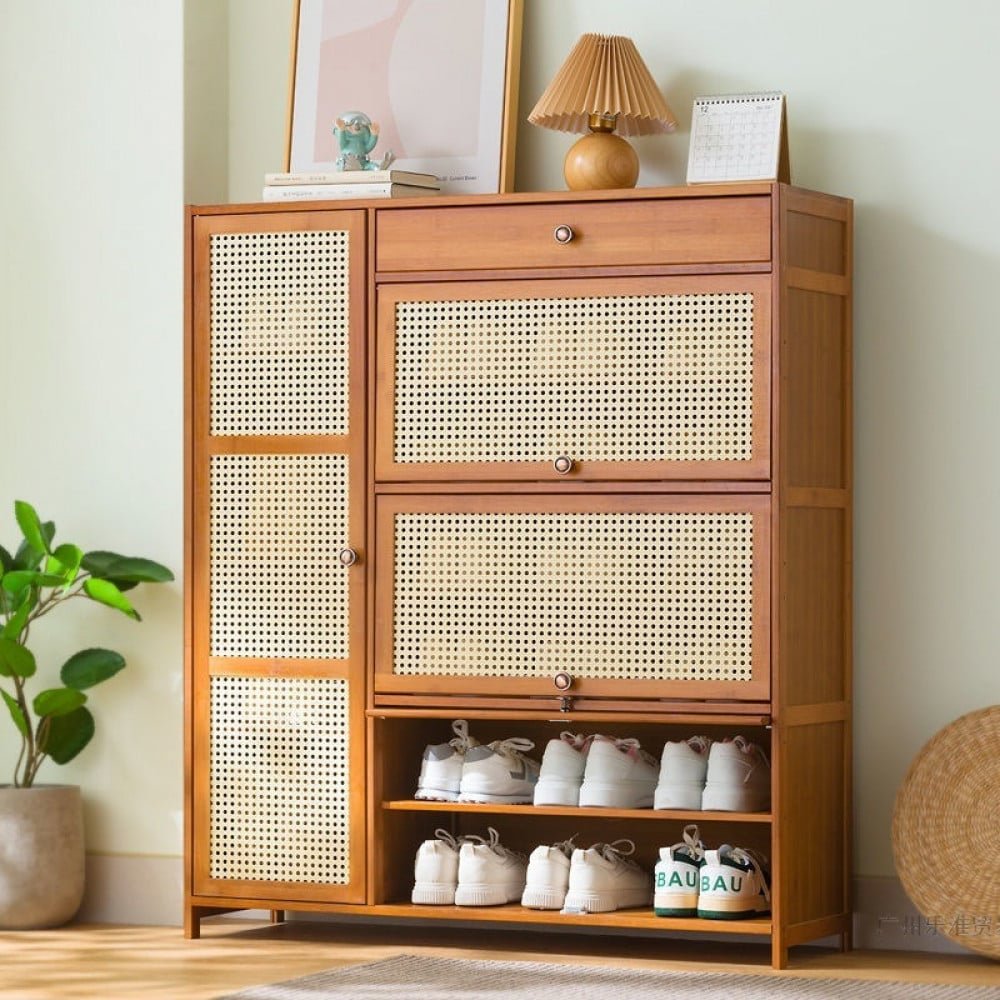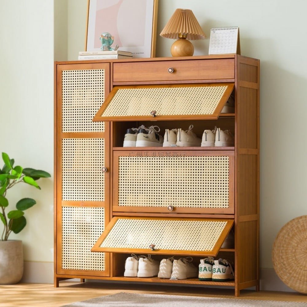 نظّم أحذيتك مع هذه الخزانة الأنيقة وحافظ عليها خالية من الغبار. خزانة الأحذية هذه مصنوعة من الخشب وأجود المواد، مما يمنحها مظهرًا عصريًا يناسب أي غرفة بشكل مثالي. مع وجود مقصورات متعددة لكل نوع من أنواع الأحذية، يمكن الآن تنظيم أحذيتك بطريقة جميلة وفعالة. احصل على حلول التخزين المثالية لأحذيتك واجعل غرفتك تبدو أنيقة وعصرية مع خزانة الأحذية هذه. ومتوفر باللون الخشبي بنمط اوروبي و هو متاح بمقاس الارتفاع 117 سم * العرض 100 سم * العمق 32 سم و تستخدم في المنزل