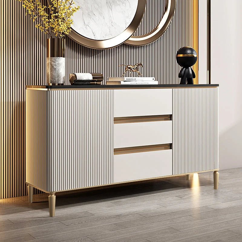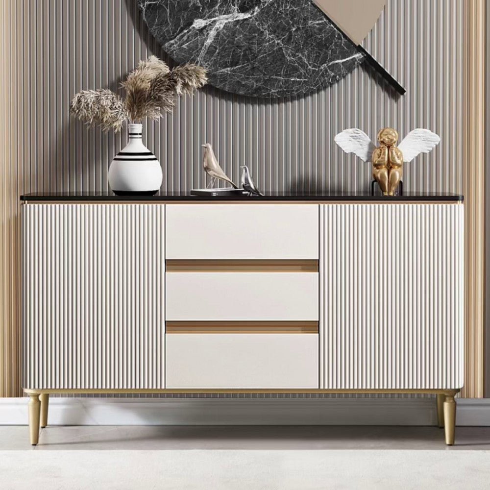 بوفيه بتصميم كلاسيكى فاخر . يأتى التصميم بمقاسات مثاليه لوضعها بإى غرفه بالمنزل حيث تبلغ من الارتفاع 80 سم و عرض 120 سم و عمق 40 سم . يتم تصنيع البوفيه من مجموعه من المواد ذات جوده عاليه مثل الخشب حيث تم أستخدامه فى الهيكل الأساسى فى البوفيه و الأستانلس ستيل فى تصنيع الارجل حتى تدعمه و تساعد على ثبات و أستقرار البوفيه و سطح من بديل الرخام  يأتي البوفية بتصميم يجمع بين البيج والذهبي ، تلك الألوان تعزز الطابع الكلاسيكى والأناقة للبوفية وتتناسب مع معظم ألوان الديكور الداخلي.