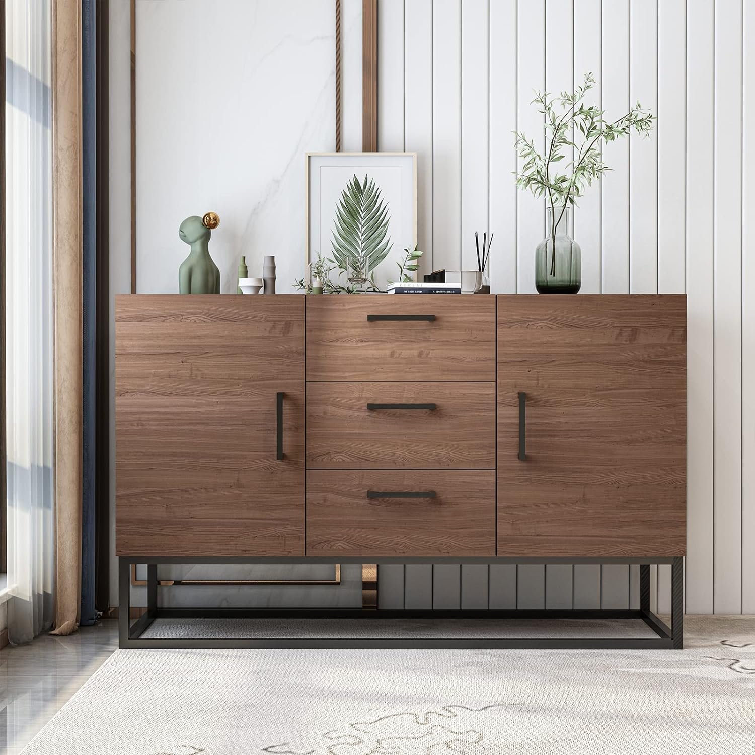 خزانة تخزين تتميز بنمط كلاسيكى مميز سيضفى على منزلك الطابع الكلاسيكى الهادئ . تم تصنيع هذه الخزانه من الخشب الصلب مع تداخل بعض التفاصيل المعدنيه مثل المقابض و الأرجل حتى تمنحها ثبات و أستقرار دائم . الخزانه تأتى باللون البنى الدافئ مما يعطيها مظهراً طبيعياً دافئاً . كما انها تحتوى على مساحه تخزينيه كبيره من الداخل توفر لك ترتيب الأغراض بكل سهول