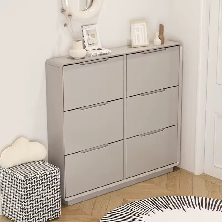 أضف لمسة دافئة ومنظمة إلى مدخلك مع خزانة الأحذية هذه، المصممة للاستفادة القصوى من المساحة. تتميز الخزانة بألوان رائعه تندمج بسهوله مع أثاث منزلك، مع تصميم يجمع بين التخزين المفتوح والمغلق. الجزء السفلي يوفر مساحة تخزين مغلقة ببابين واسعين ومقبضين عصريين، مثالية لحفظ الأحذية والمحافظة على مظهر المدخل خالياً من الفوضى. أما الجزء العلوي فيحتوي على درج أفقي لتخزين المفاتيح والأغراض الصغيرة، وسطح علوي محاط بإطار يوفر مكاناً أنيقاً لوضع مصباح، أو نباتات ديكورية. كما تم إضافة مساحة سفلية مفتوحة صغيرة لتخزين الأحذية سريعة الوصول. هذه القطعة المتكاملة هي الحل الأمثل الذي يجمع بين الجمال الخشبي الطبيعي، والتنظيم الفعال، في تصميم عمودي موفر للمساحة.