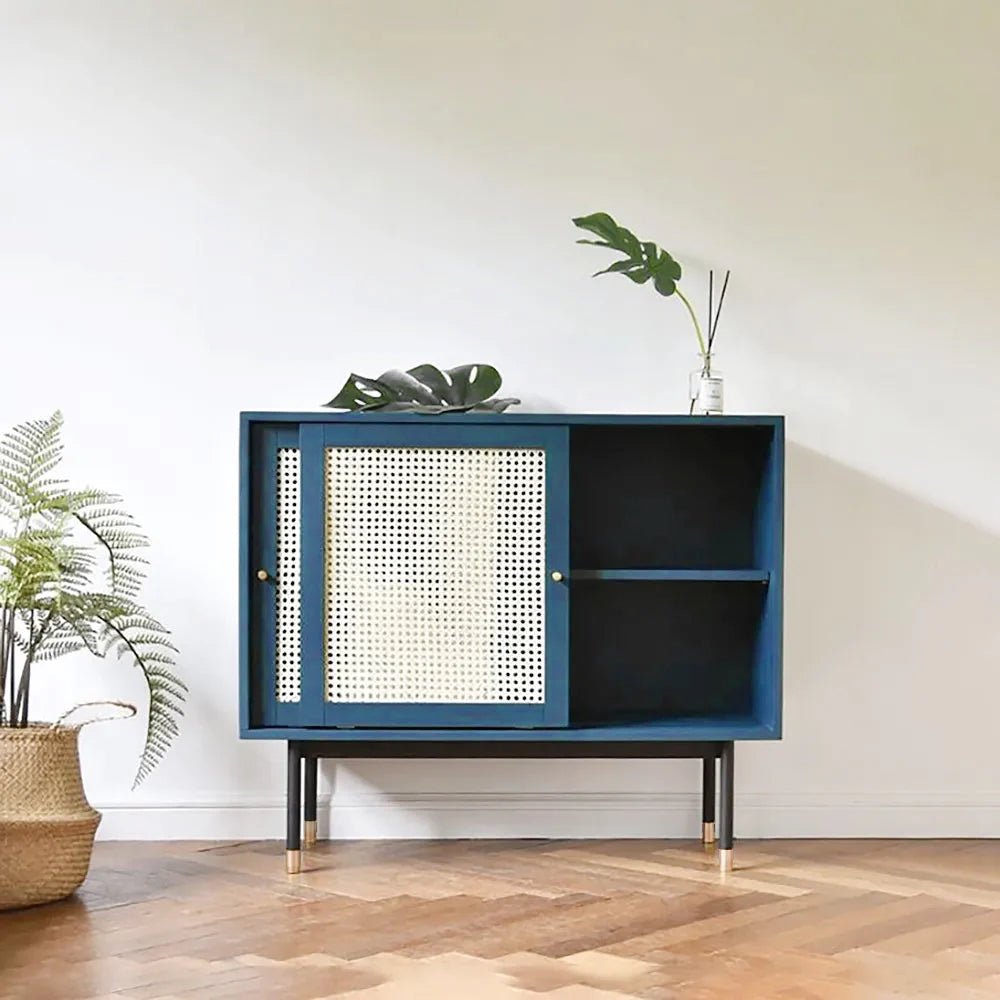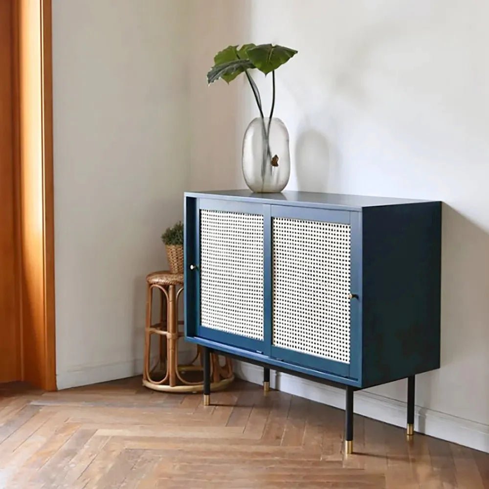ستضفي هذه الوحدة الجانبية على غرفتكِ مظهرًا عصريًا. تأتي مع تصميم مثير للإعجاب ولمسة تشطيب جميلة وتخفي الخزانات الأثنتين مساحة تخزين واسعة لمساعدتكِ على تكديس الأدوات المنزلية بشكل ملائم. إنها مصنوعة من الخشب الهندسي الذي يعرض طبعات الروطان، وتتميز بلمسة تشطيب من الروطان لتدوم لفترة أطول.