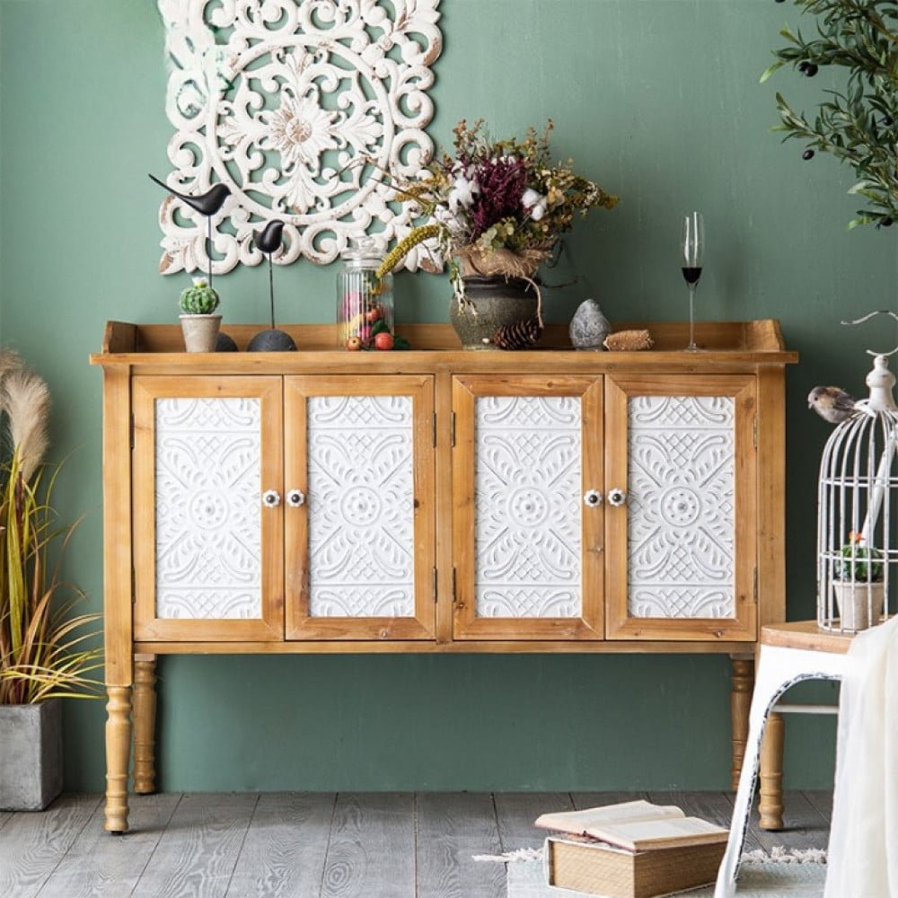 خزانة الريف الخشبية تجمع بين التخزين العملي والمظهر الفريد، لأنها مصنوعة من الخشب المصمت. كما أنه بمثابة عمل فني ورمز للأسلوب الراقي. بينما يضيف تصميمها الريفي طابعًا مميزًا إلى أي مساحة معيشة. بفضل سعتها التخزينية الكبيرة، تعد هذه القطعة مثالية لتخزين أغراضك و متوفره ب اللون الخشبي و مقاس (العرض128سم * العمق 45 سم* الارتفاع 86 سم ) و يمكنك استخدامه في عدة اماكن مثل المنزل او الفندق او المطعم