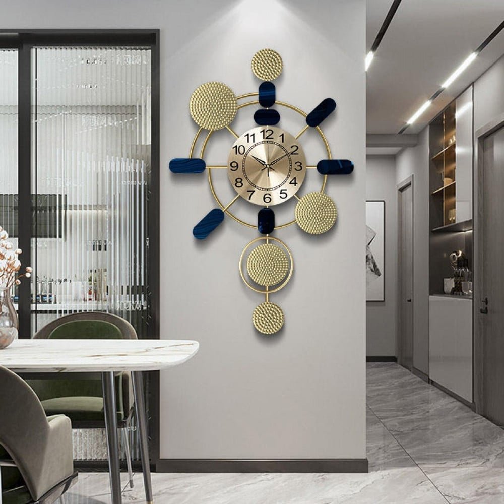 ساعه حائط بتصميمها الكلاسيكي المميز الذي يضيف لمسات من الجمال علي حائط منزلك كما ان تداخل اللون الذهبي مع الأزرق اضاف إليها لمسه جذابه و متوفره ب مقاس واحد و هو ( ارتفاع 77سم *عرض51 سم )