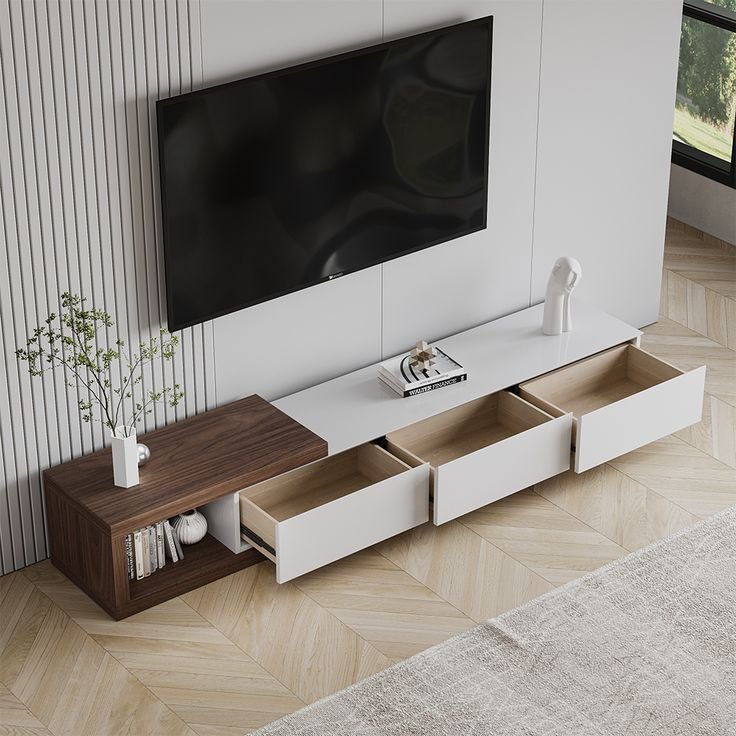 طاولة تلفاز بتصميم أنيق وعصري , عزز من فخامة غرفة معيشتك بإضافة طاولة التلفاز الجذابة , مع تصميم يمكن التحكم في حجمها بحرية كما تحب وكما تتناسب مع مساحة منزلك او غرفتك ايضا باستخدام افضل وأجود الخامات الحديثة مع الوان مميزة تتناسق مع جميع الديكورات والغرف .