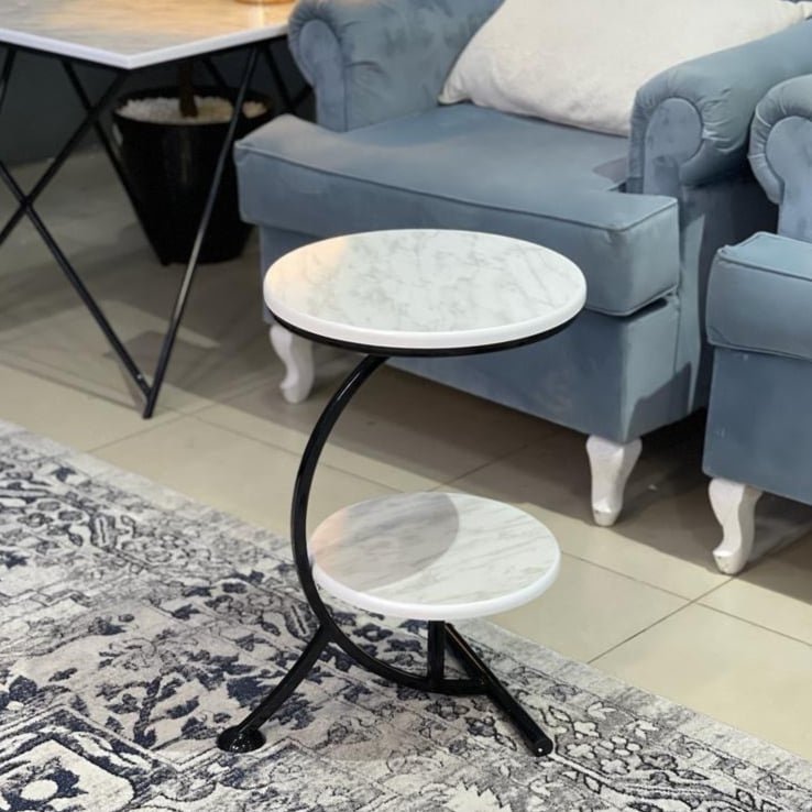 ارتقِ بديكور منزلك مع هذه الطاولة الجانبية ذات المستويين، التي تجمع بين الأناقة العصرية والوظائف المتعددة. تتميز بتصميم فريد يضفي لمسة من الرقي والفخامة على أي مساحة.