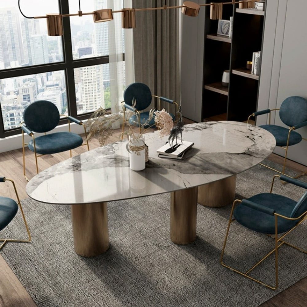 طقم طاولة طعام رخام مع كراسي هو منتج فريد وراقي مصنوع من أجود أنواع الخامات. يتميز هذا الطقم باللون الأنيق والملمس الناعم المتوفر بلونين رائعة، البرتقالي والبني مع الابيض. يأتي هذا الطقم بمقاسات مختلفة، عرض طاولة 4 كراسي بعرض 120 سم وطاولة 6 كراسي بعرض 140 سم. تم تصنيع هذا الطقم من معدن ورخام عالي الجودة ، مما يجعله متين ودائم للاستخدام في المنازل والمطاعم والفنادق. استمتع بتناول الطعام على هذا الطقم الفاخر والأنيق، واجعل تجربة تناول الطعام مميزة لا تُنسى.