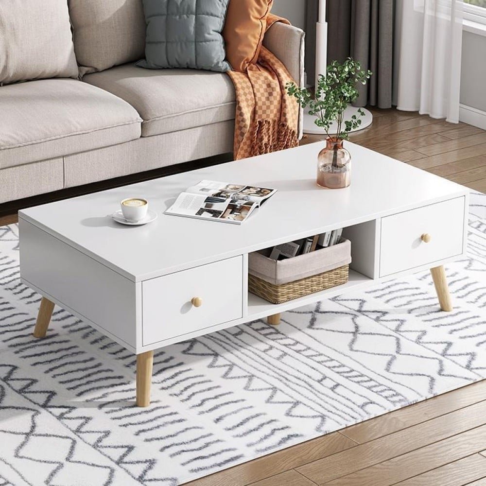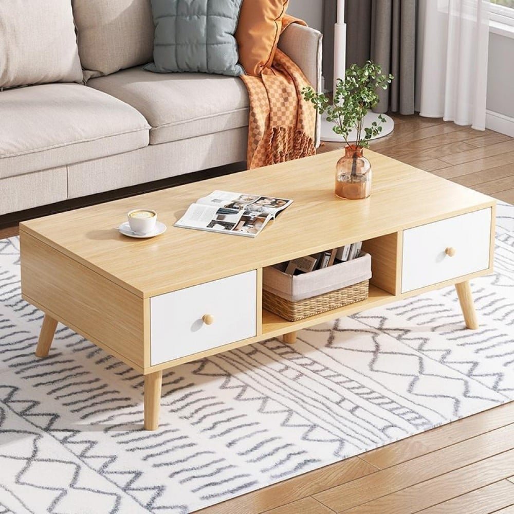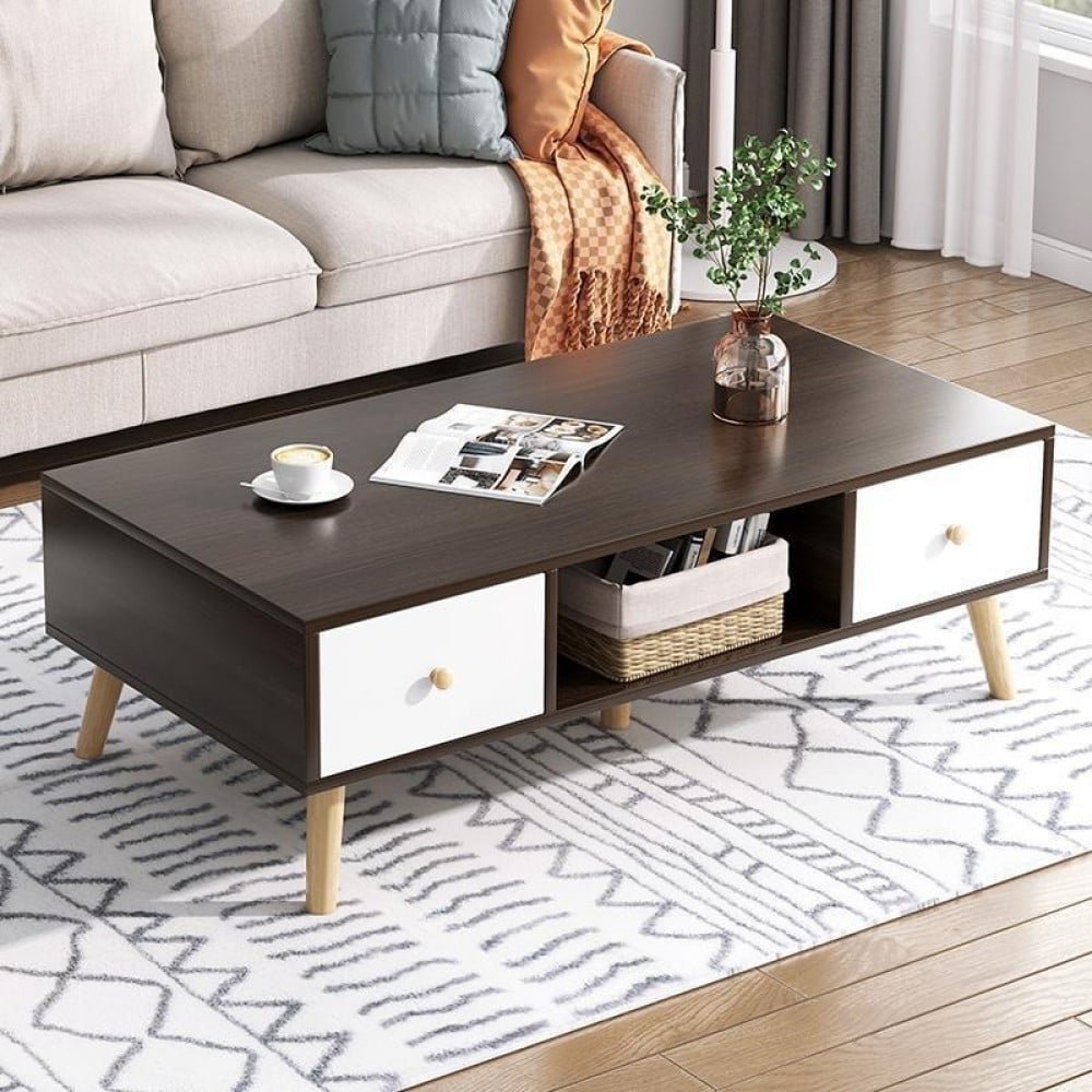 طاولة قهوة خشبية بتصميم انيق مصنوعه من اجود انواع الخشب الصلب. مع رف ودرجين لتسهيل حفظ اغراضك بشكل منظم وقريب منك ,
