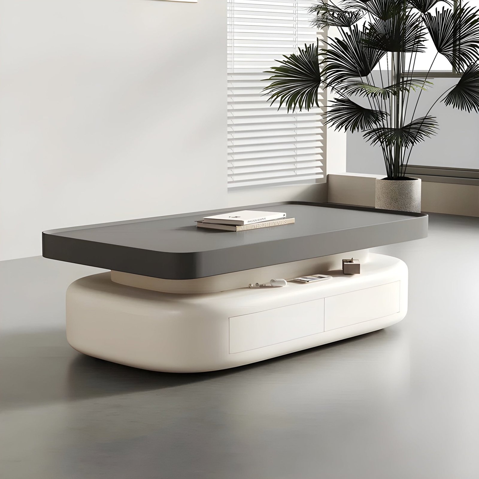 أضف لمسة من الرقي العصري إلى غرفة معيشتك مع هذه الطاولة القهوة الفريدة، المصممة لتجمع بين البساطة والعملية. بفضل تصميمها الأنيق والقاعدتها المنحنية، توفر هذه الطاولة مظهراً هادئاً وأنيقاً يتناسب مع الديكورات الحديثة.
