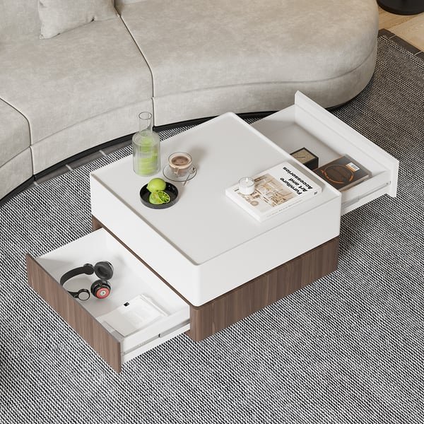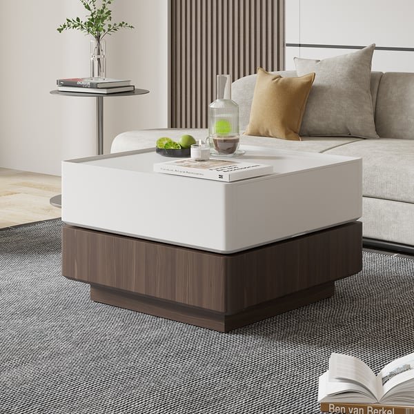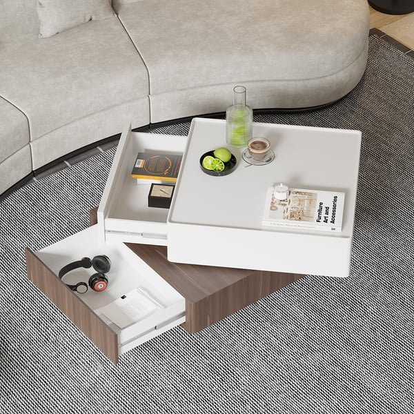عزز غرفة معيشتك باستخدام طاولة القهوة الفاخرة هذه، التي تتميز بهيكل خشبي متين وطبقة وخاصية الدوران ل360 درجة. مصنوعة بأجود انواع الاخشاب، وهي مثالية لعرض الديكور الخاص بك  وتقديم العديد من المشروبات وبفضل ادراجها المتعددة ستوفر العديد من مساحات التخزين وستصبح جميع اغراضك بالقرب منك.