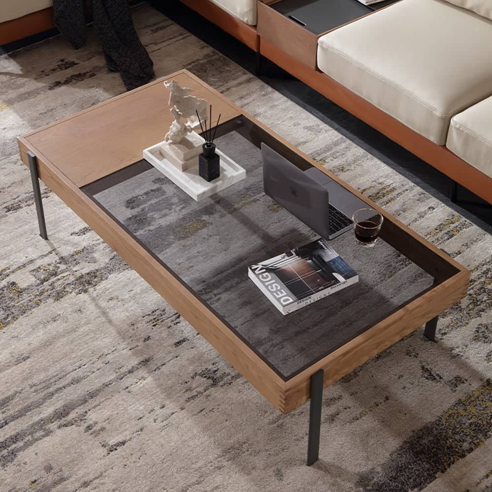 طاولة قهوه مودرن بتصميم بسيط بسطح يجمع بين الخشب و الزجاج و أرجل من المعدن القوى تضمن لك الصلابه و الثبات . بالتأكيد ستكون إضافه مثاليه لغرفة المعيشه الخاصه بك