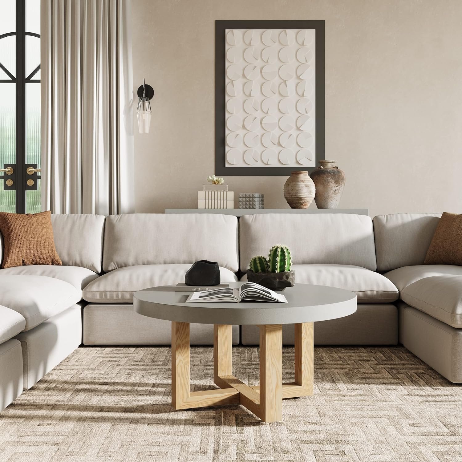 أضف لمسة من الأناقة والحداثة إلى غرفة معيشتك مع طاولة القهوة الدائرية المثالية، التي تجمع بين التصميم العصري والوظائف العملية. يوفر شكل الطاولة الدائري توازناً أنيقاً مع باقي أثاث الغرفة ويعزز التدفق البصري للمساحة. الأرجل أو القاعدة مصممة بأسلوب عصري وتوفر استقرارًا قويًا للطاولة مع لمسة من الفخامة بفضل التصميم العصرى