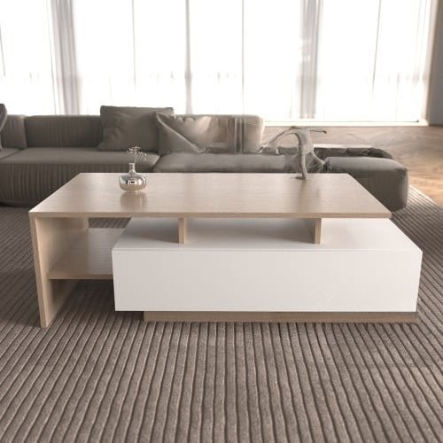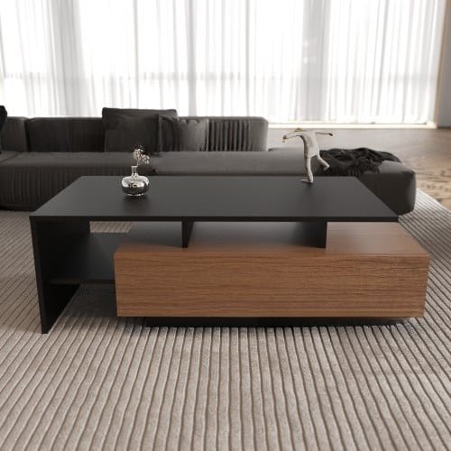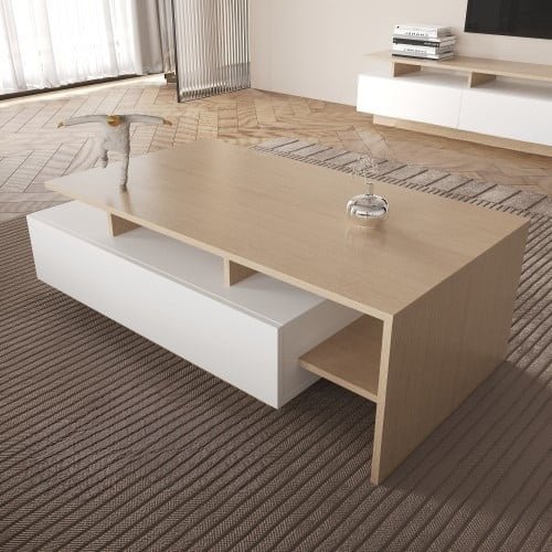 طاولة قهوه بسيطه من الوح خشب mdf شديد الصلابه و عالي التحمل . الطاوله تأتي بأبعاد تجعلها مناسبه لوضعها بأي مكان و هي عرض 120 سم و ارتفاع 40 سم و عمق 63 سم . و تتوفر بألوان الاسود مع الخشبي الغامق و الخشبي الفاتح مع الابيض . تتميز هذه الطاوله بجودتها العاليه وتصميمها الكلاسيكي البسيط