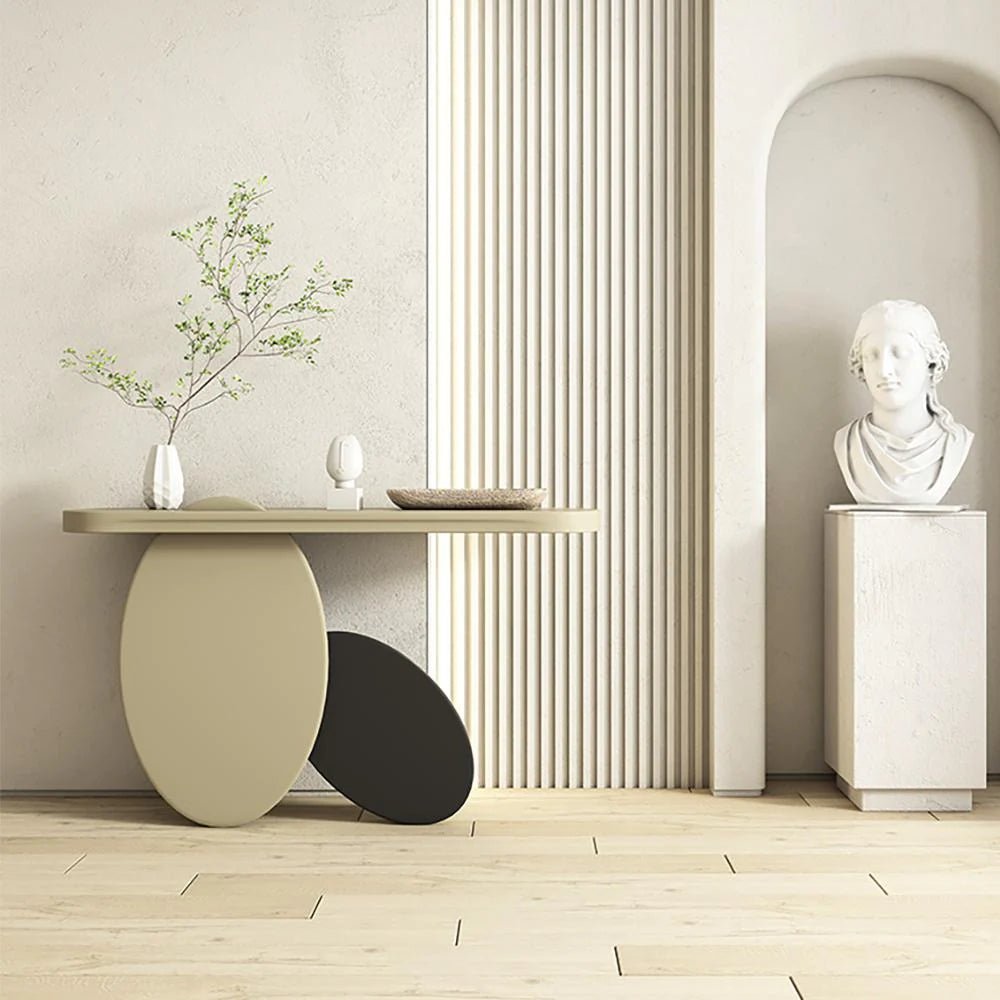 كونسول خشبى فاخر . مصنوع من خامات عاليه الجوده منها الخشب الصلب أضيفي طاولة الكونسول المميزة هذه لأثاث منزلك الفاخر. بسطح بيضاوي انيق لتعزز من ديكور غرفة المعيشة، كما أنها تتميز بطابع عصري ويمكن تنظيفها بكل سهولة.