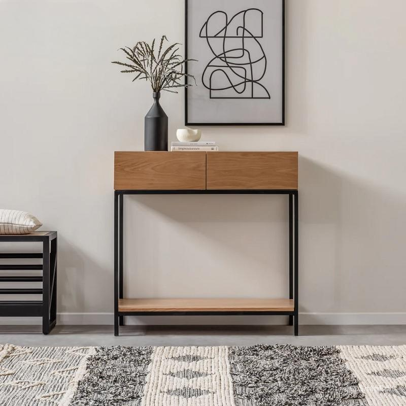 أضف لمسة عصرية وأناقة خالدة إلى منزلك مع هذه الطاولة الجانبية الفاخرة. تتميز بتصميم عصري يجمع بين الخشب الطبيعي والإطار المعدني الأسود، مما يضفي مظهراً راقياً ومناسباً لمختلف أنماط الديكور. مزودة برفين عمليين لتخزين الكتب أو عرض الديكورات، بالإضافة إلى سطح واسع لعرض الإكسسوارات أو النباتات. هذه القطعة ليست فقط جميلة، بل أيضاً عملية وتضفي لمسة دفء وأناقة على أي غرفة في منزلك. مثالية للمداخل، غرف المعيشة، أو حتى غرف النوم