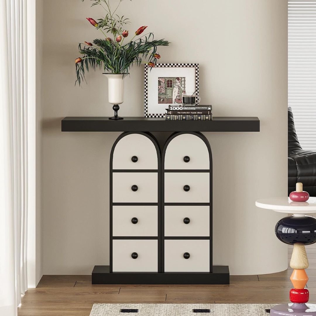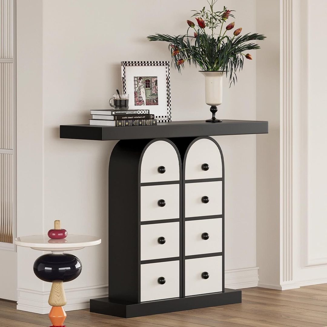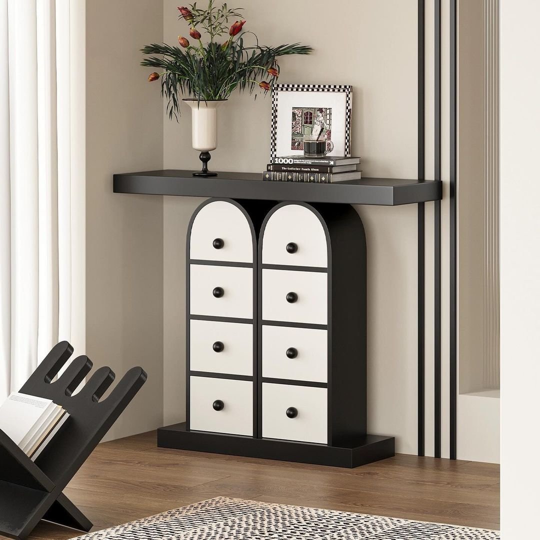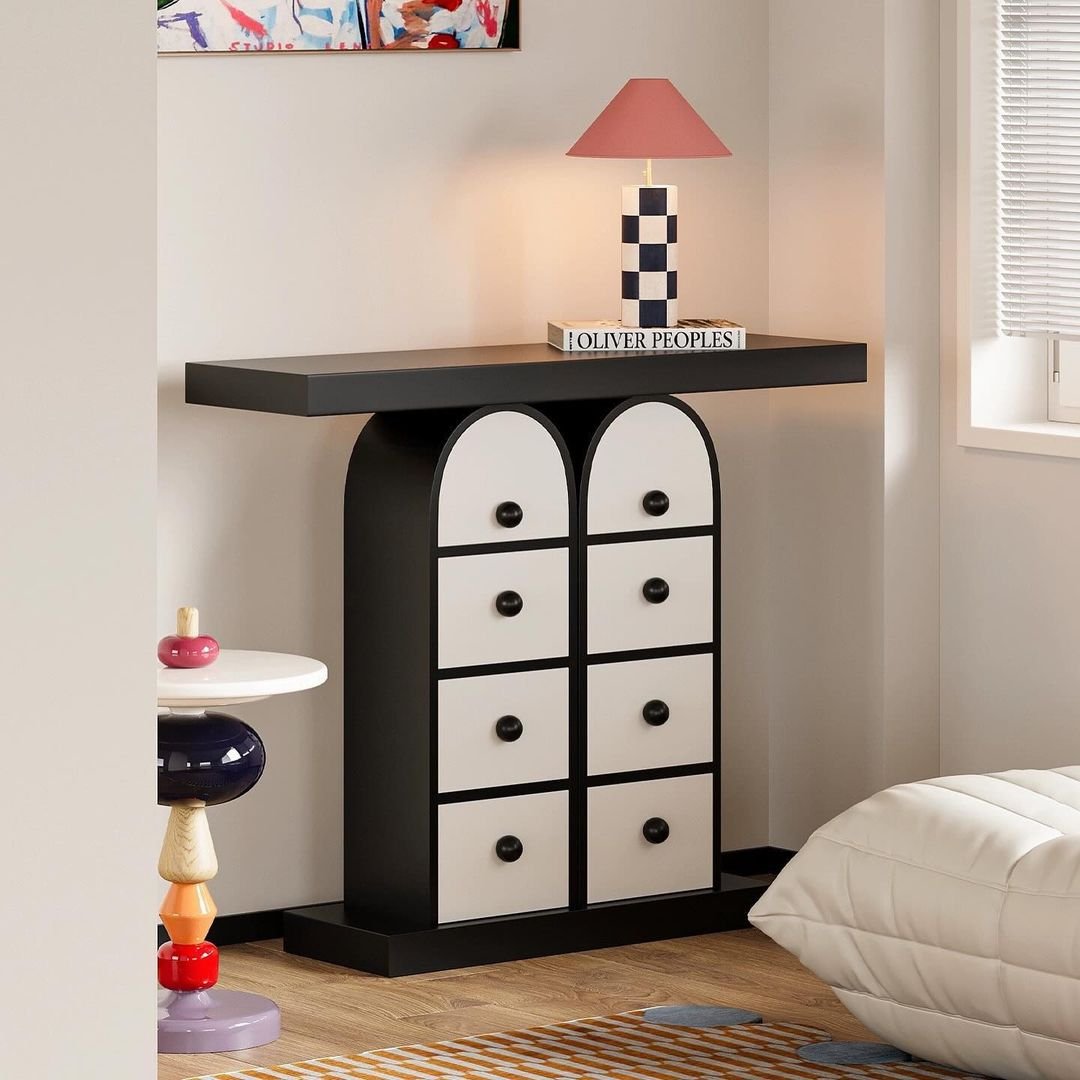 نقدم لكم هذه الطاوله الرائعه المتعددة الاستخدامات حيث يمكنك أستخدامها كطاوله مدخل او كوحدة تخزين رائعه فى غرفة معيشتك بفضل الادراج المتعدده بها . كما يمكن استخدامها في اماكن مختلفة في المنزل تتميز بتصميمها الفريد وسطحها الواسع ووحدات التخزين المتعددة المضافه لها لحفظ المقتنيات بالإضافة لتصميمها المميز فهى مصنوعه من الخشب الصلب مع استخدام المعدن الغير قابل للصدأ فى تصنيع مقابض الادراج