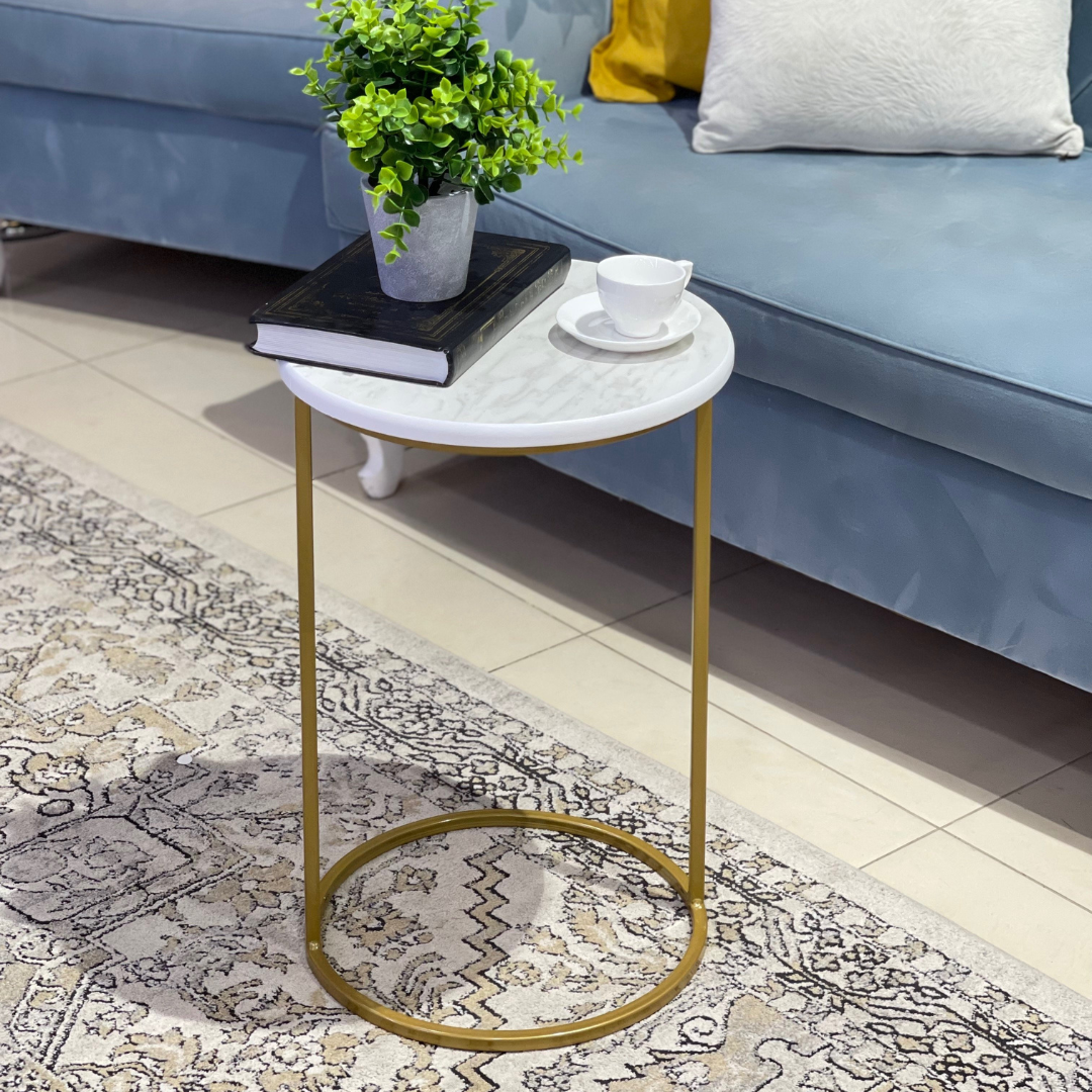 صُممت هذه الطاولة الجانبية الصغيرة لتكون قطعة مركزية أنيقة وعملية في آن واحد، مما يجعلها الإضافة المثالية لغرفة المعيشة، غرفة النوم، أو أي زاوية تحتاج إلى لمسة من الرقي. يجمع تصميمها بين جمال السطح الخشبي الأبيض ولمعان المعدن الذهبي، ليضفي إشراقة وجاذبية على ديكورك