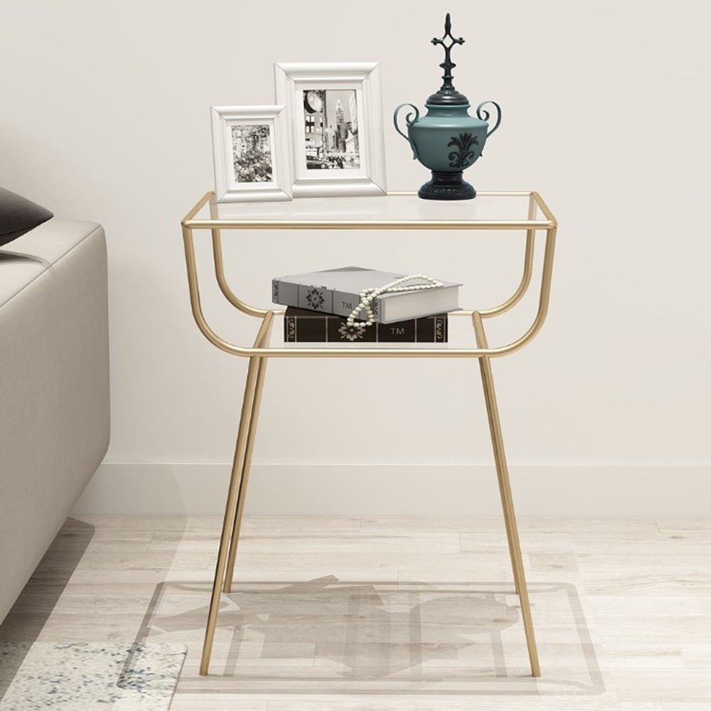 تتميز هذه الطاولة بتصميم أنيق وجودة فائقة في التصنيع، مما يجعلها إضافة رائعة لأي مساحة داخلية. تم تصنيعها باستخدام معدن عالى الجوده مقاوم للصدأ وسطح زجاجى شفاف حتى يجعلها أكثر رقه ، مما يمنحها متانة واستقرارًا فائقين. وتتميز بأكثر من لون مثل الأبيض و الأسود و الذهبى حتى يتناغم بشكل جميل مع أنماط الديكور المختلفة. يبلغ عرض الطاولة 49 سم، مما يوفر سطحًا واسعًا لوضع الأشياء بشكل منظم. كما أن عمقها يبلغ 33 سم، و ارتفاعها 60 سم مما يجعلها مثالية لوضع الكتب، والديكورات،