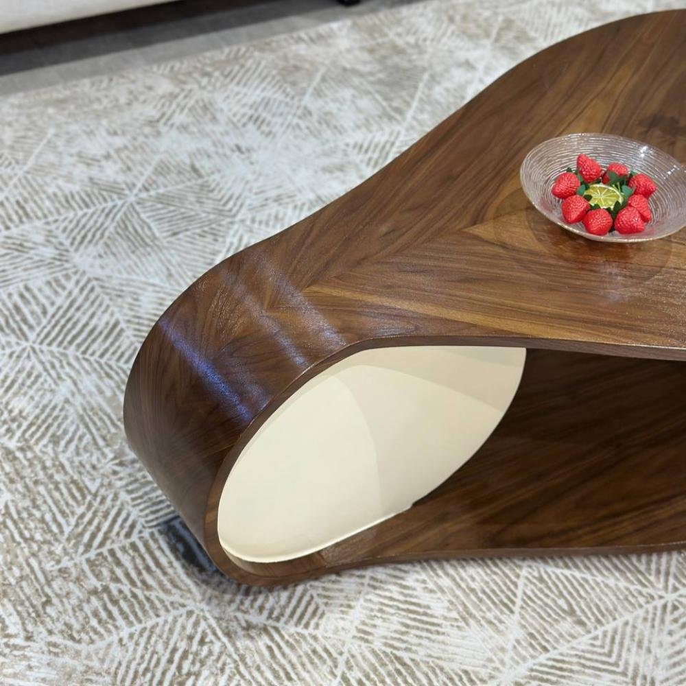 تجمع هذه الطاولة الاستثنائية بين الأناقة العصرية وجمال الطبيعة، لتكون قطعة مركزية تُلفت الأنظار في غرفة معيشتك. مصنوعة من خشب عالي الجودة بتشطيب دافئ وغني، وتتميز بانحناءات انسيابية وتصميم مبتكر يضيف لمسة من الرقي والفخامة.