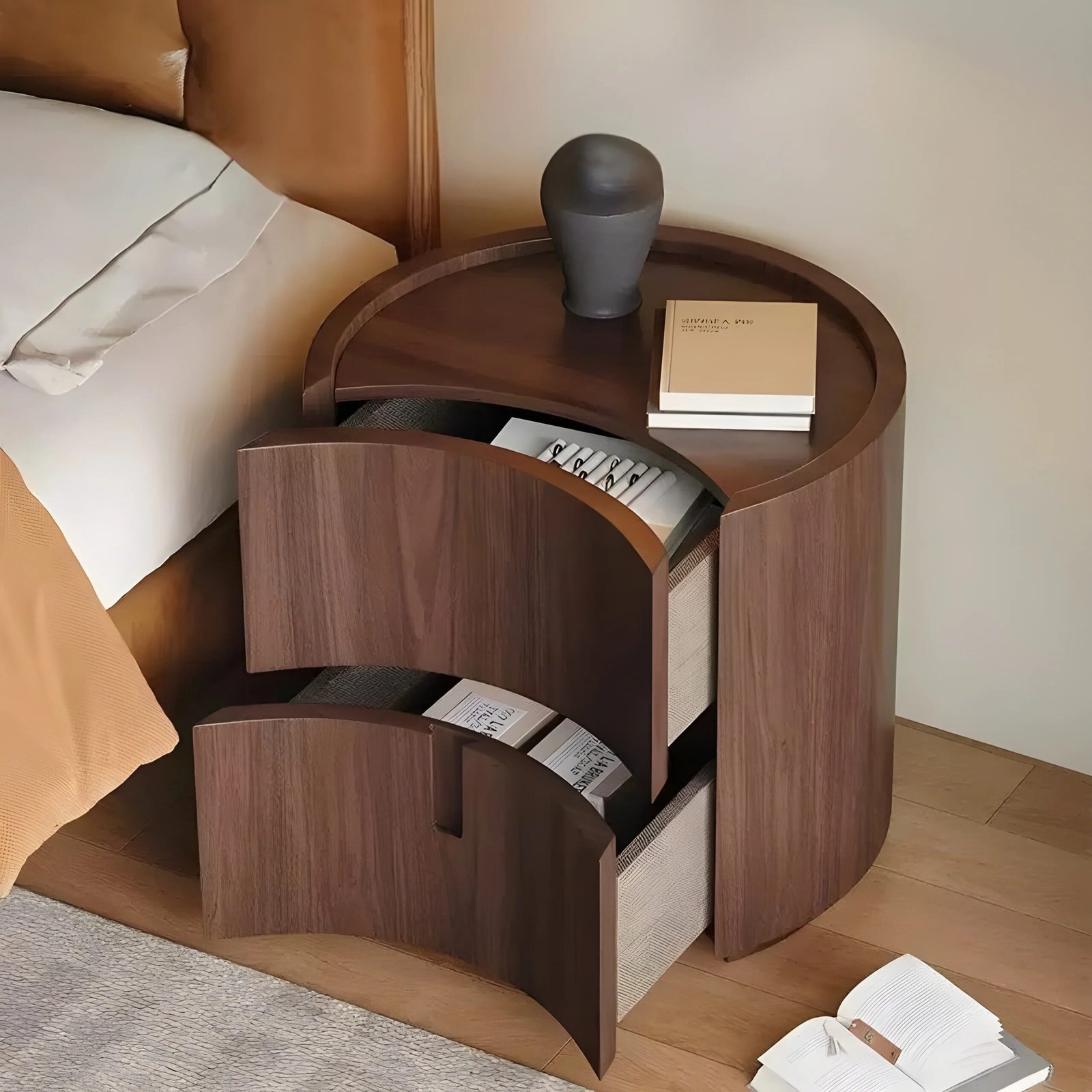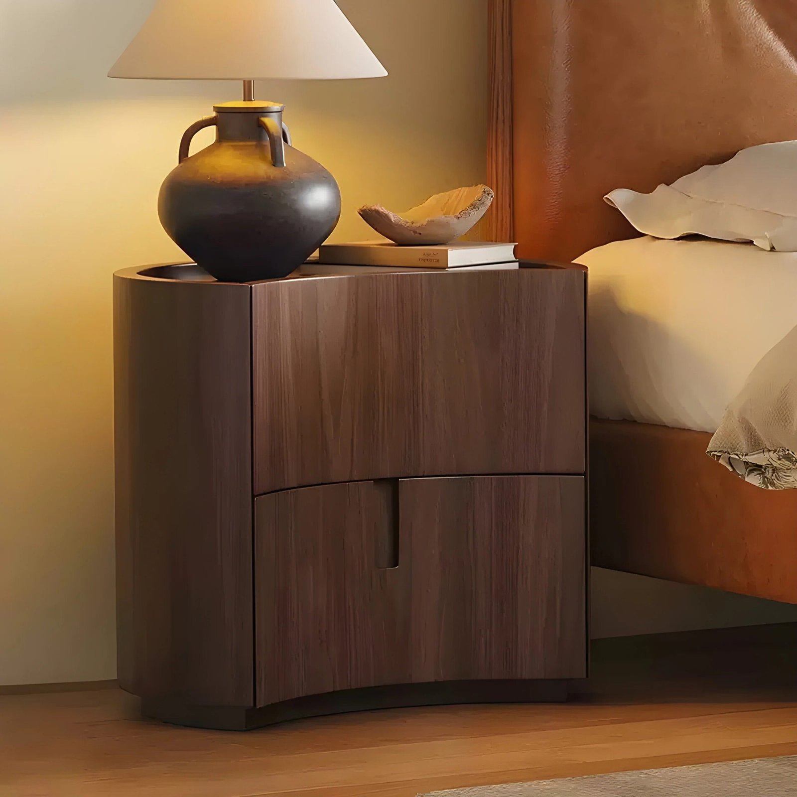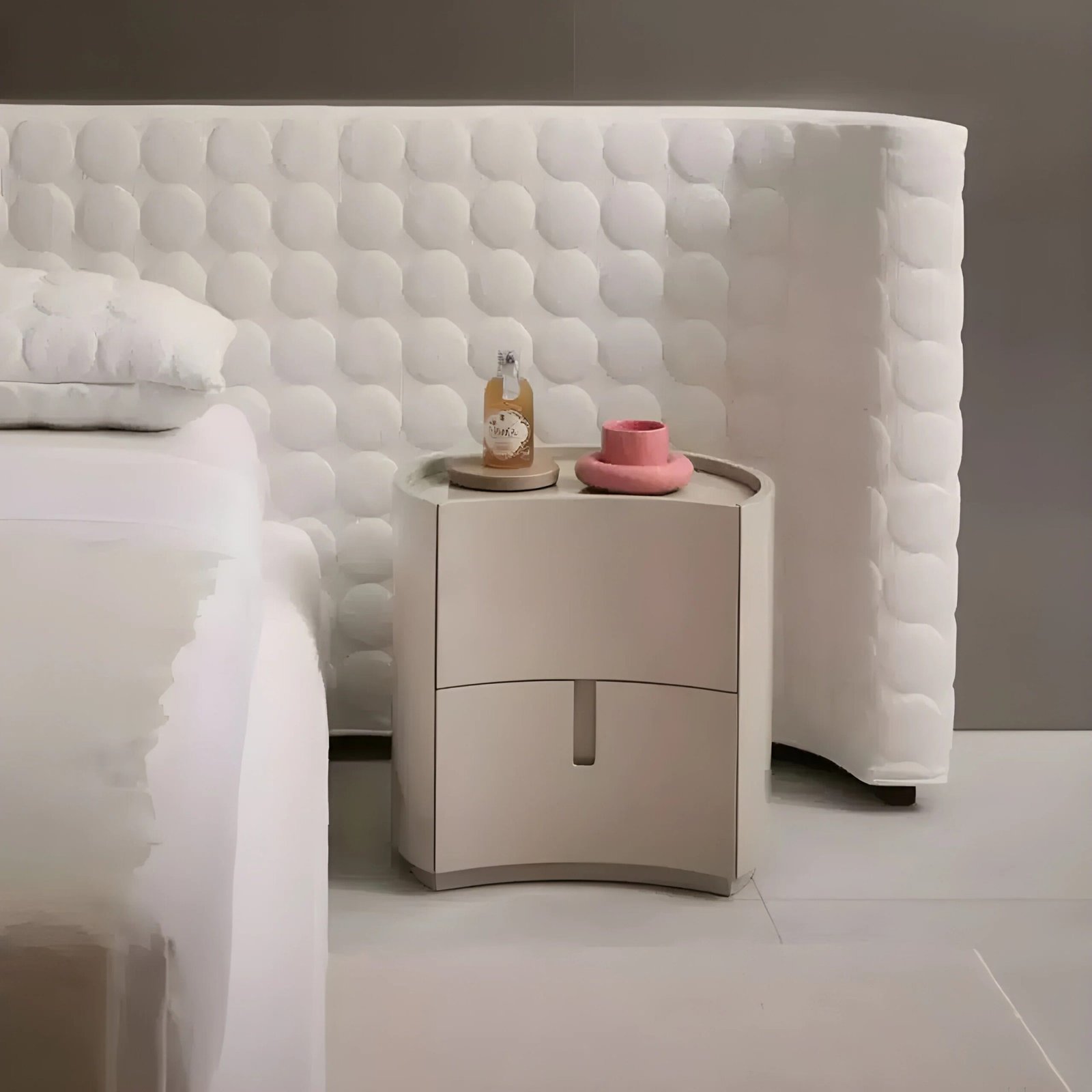 هذه القطعة الأنيقة تجمع بين البساطة والوظيفة بتصميم عصري وانسيابي، فهي خزانة جانبية متعددة الاستخدامات تتميز بسطح أملس ولمسة نهائية لامعة تضيف لمسة فاخرة لأي مساحة. تحتوي على درجين بتصميم خفي لتخزين الأدوات الصغيرة أو المستلزمات اليومية بشكل منظم، مما يجعلها مثالية لغرفة النوم كطاولة جانبية،. تصميمها المنحني الفريد يوفر حضورًا مميزًا يجمع بين الجمال العملي والفخامة الهادئة.