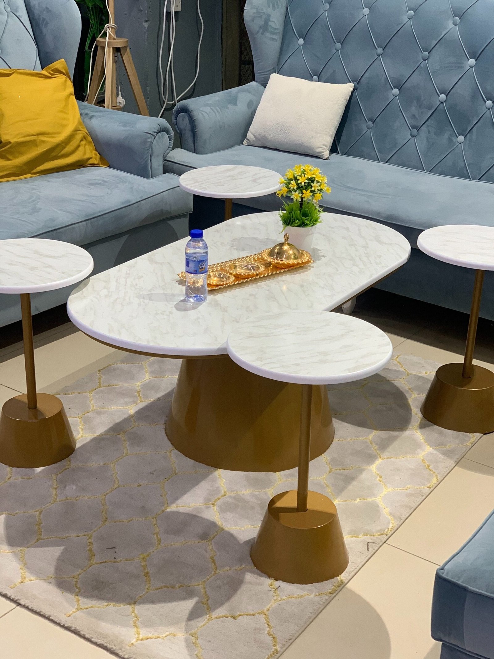 الطاوله الصغيره : قطر 36 سم – الارتفاع 56 سم