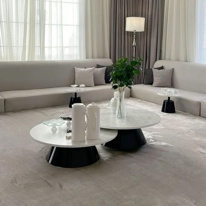 ارتقِ بجمال وعملية مساحتك المعيشية مع هذه المجموعة المتفردة من طاولات القهوة والخدمة، المصممة لتخلق نقطة محورية آسرة في أي ديكور عصري. بدمجها بين أناقة الخشب الأبيض الخالد وقوة اللون الأسود الجريء، تجسد هذه المجموعة الانسجام المثالي بين الفن والوظيفة.