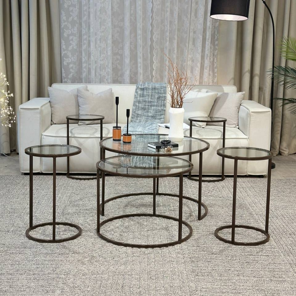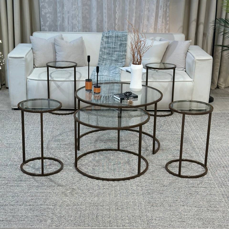 اكتشف التناغم المثالي بين الفخامة العصرية والوظائف المتعددة مع طقم طاولات رائع الذي صُمم ليضفي لمسة من الرقي المنظم على مساحتك. هذا الطقم الشامل يوفر حلولًا مرنة وعملية لكل احتياجاتك، سواء للترفيه أو الاسترخاء اليومي.