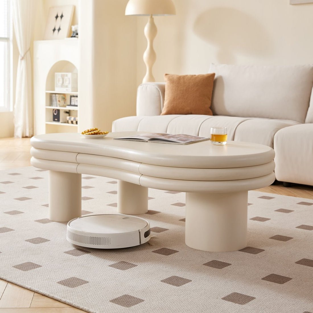 طاولة قهوة بتصميم فني عصري تجمع بين البساطة والأناقة في قطعة واحدة، تضيف لمسة جمالية فريدة لأي غرفة معيشة بفضل شكلها الانسيابي المستوحى من التصميم الحديث، مصنوعة من خامات عالية الجودة بسطح متين وسهل التنظيف، مثالية لتنسيق المشروبات أو الكتب أو الإكسسوارات المنزلية، وتُعد خيارًا مثاليًا لعشاق الذوق الراقي الذين يبحثون عن قطعة تجمع بين الجمال والوظيفة في نفس الوقت.