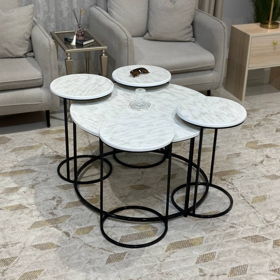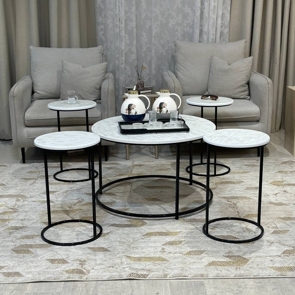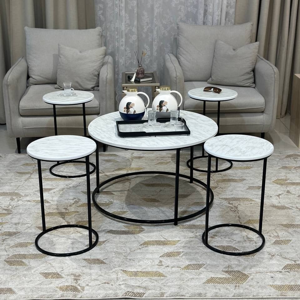ارتقِ بمركز غرفتك مع هذا الطقم الفريد من طاولات القهوة والخدمة، المصمم ليجمع بين الأناقة العصرية والوظائف المتعددة في قطعة فنية واحدة. مستوحى من جمال الطبيعة، هذا الطقم ليضفي لمسة من الإبداع والتميز على ديكور منزلك