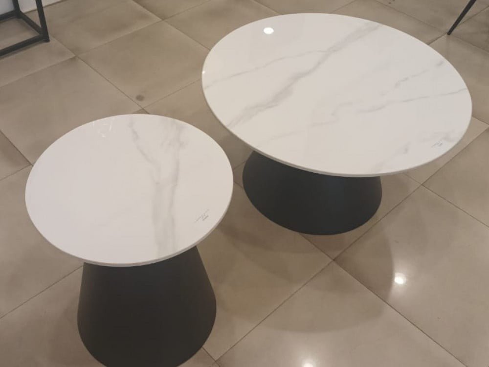 طاولات قهوة حديثة بتصميم اوروربي مصنوعه من الرخام و المعدن و متاحه باللون الابيض والاسود و بمقاس الطاوله الصغيره : ارتفاع 45 سم و قطر46 سم و الطاوله الكبيره : ارتفاع 45 سم و قطر 80 سم و يمكن استخدامها في المنزل و الفنادق و ايضا المطاعم