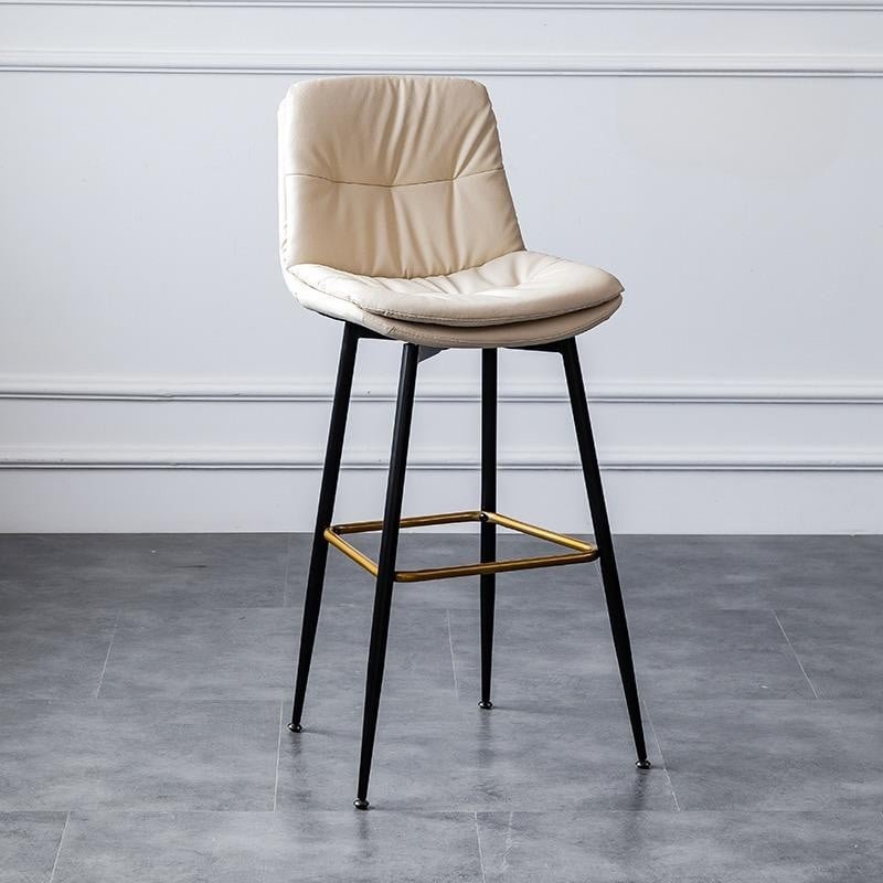 للحصول على تصاميم كراسي بار فاخرة وانيقة ننصحك بكرسي البار هذا المصنوع من الجلد الطبيعي المحشي بالإسفنج الطري لتوفير أعلى مستوى من الراحة، هذا الكرسي مزود بمسند ظهر وأذرع لمزيد من الراحة أثناء الجلوس، يتميز بأرجل من الحديد مزينة من الأسفل بطلاء ذهبي لإضافة المزيد من الفخامة على التصميم.