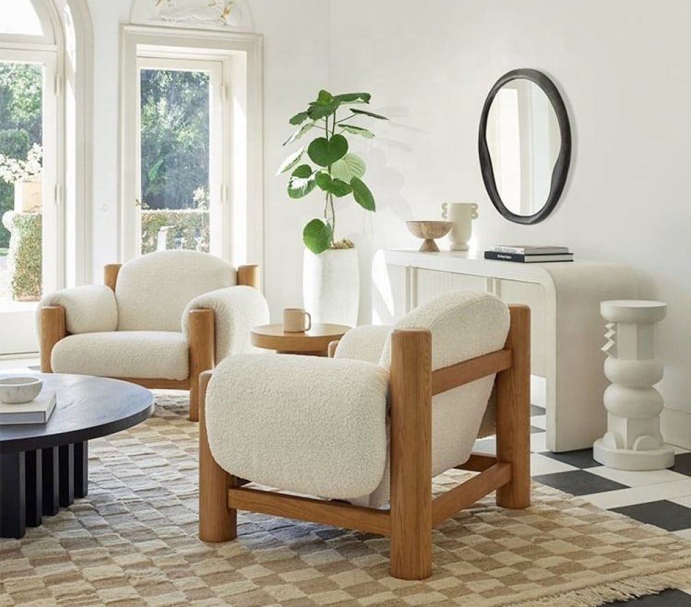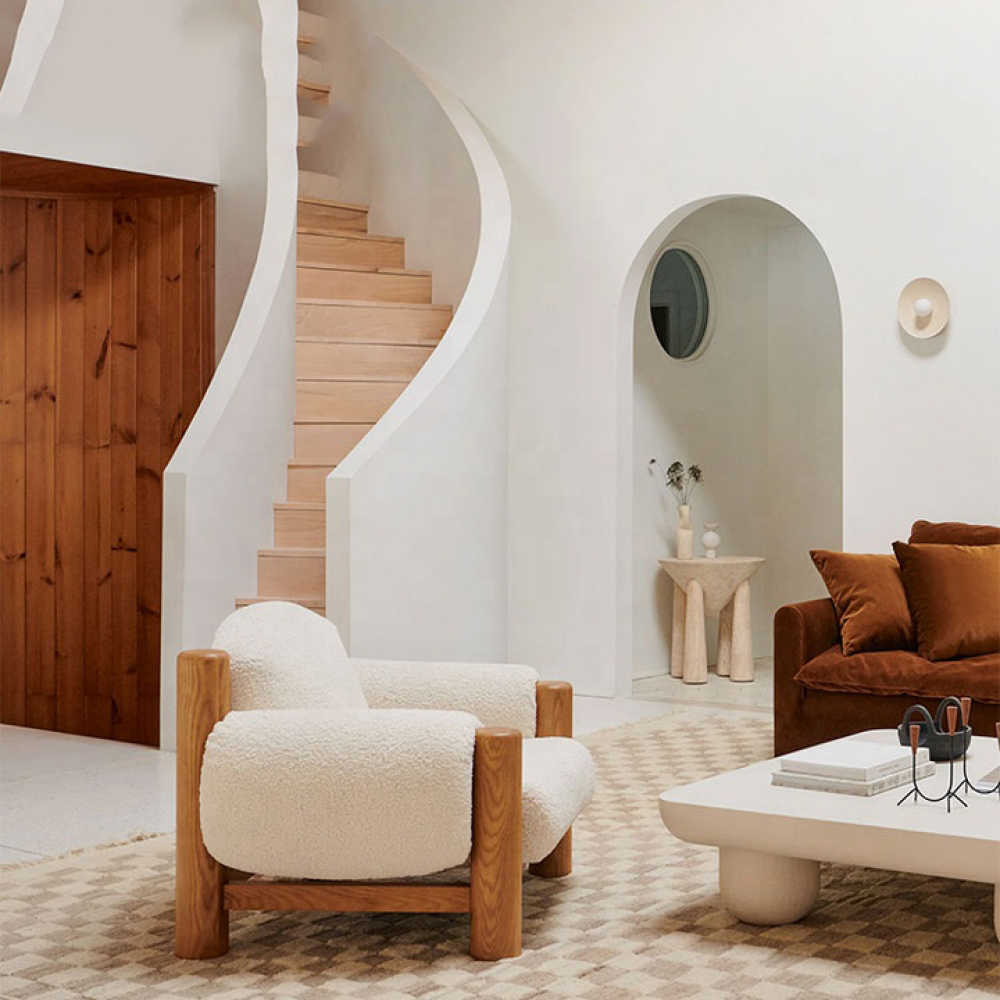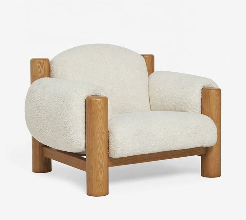 كرسى أنيق بتصميم مميز متوفر باللون الأبيض الدافئ و مقاسات عرض 110 و عمق 88 سم و ارتفاع 85 سم . يتميز الكرسي بتصميم عصري وجذاب، ومصنوع من خامات عالية الجودة مثل قماش الصوف الناعم و الخشب . يتميز الكرسي بأناقته وراحته العالية، ويضفي لمسة من الأناقة والجمال على أي مساحة يتم وضعه فيها. يمكن استخدام الكرسي في غرف المعيشة والمكاتب والأماكن العامة، ويتماشى مع جميع الأذواق