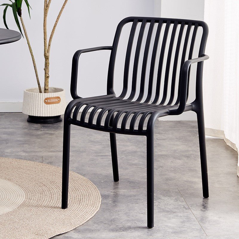 كرسى طعام بتصميم رائع . الحداثة والعصرية في التصميم تجدونها في هذا الكرسي المصنوع من الفايبر والمزود بمسند ظهر مصمم بشكل انسيابي ، هذا الكرسي مناسب للجلسات الخارجية والداخلية كما يمكن استخدامه ككرسي انتظار أو طعام. و يأتى بعدة الوان هما الابيض و الاسود و الرمادى