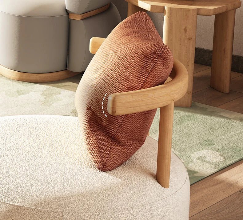 اجعل ركن الاسترخاء الخاص بك أكثر دفئًا وراحة مع هذا الكرسي الدائري الفريد. يتميز بتصميم عصري بسيط مع خامات عالية الجودة، مما يوفر لك تجربة جلوس فاخرة ومريحة. يتميز الكرسي بمسند ظهر خشبي أنيق ودائري ليوفر دعمًا متوازنًا ومريحًا أثناء الجلوس. مصنوع من خامات متينة تضمن الاستخدام الطويل والمتانة، مع قماش ناعم ومريح للمس. شكله الدائري البسيط يجعل هذا الكرسي قطعة مثالية تتناسب مع مختلف أنماط الديكور سواء في غرف المعيشة، زوايا القراءة، أو حتى في غرف النوم.