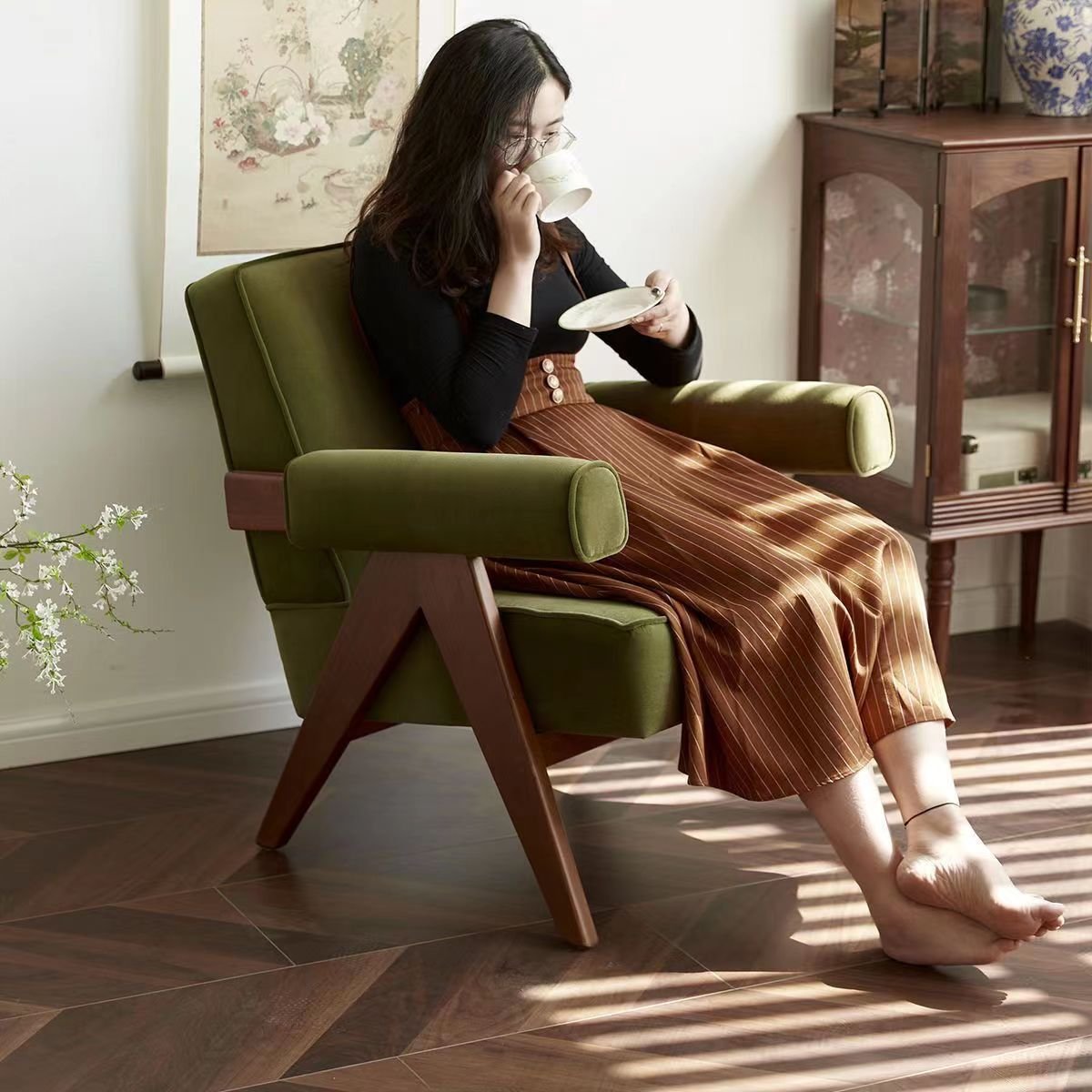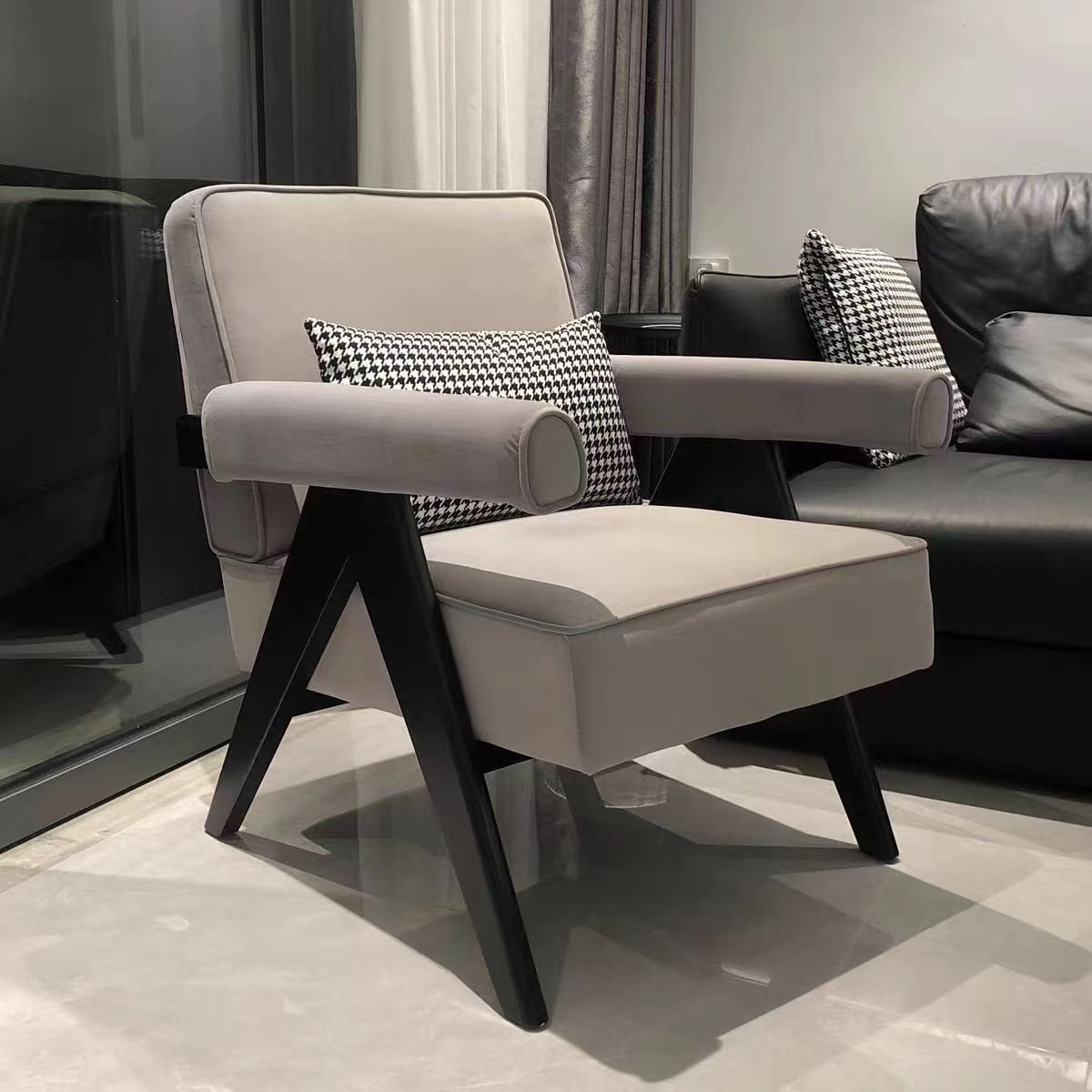 هذا الكرسي الفاخر بتصميمه العصري والأنيق يعد إضافة مثالية لأي غرفة معيشة أو مساحة استقبال. يتميز بتفاصيله المبتكرة حيث يجمع بين الراحة والتصميم الفريد، مع هيكل خشبي متين بلون أسود أنيق يضفي لمسة من الفخامة والحداثة . ينسجم هذا الكرسي بسهولة مع مختلف أنماط الديكور سواء العصرية أو الكلاسيكية، كما يمكن استخدامه ككرسي جانبي مميز أو كقطعة أساسية ضمن ديكور غرفة المعيشة. تصميمه المتين وخاماته الفاخرة تضمن الاستخدام طويل الأمد والجودة التي تستحقها. اجعل مساحتك أكثر أناقة وراحة مع هذا الكرسي الأنيق بتصميمه المميز