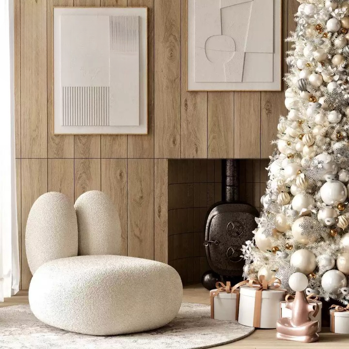 استمتع بالراحة والفخامة مع هذا الكرسي الفريد، والذي يضفي لمسة من المرح والأناقة إلى منزلك. الكرسى مصنوع من قماش ناعم و قاعده خشبيه صلبه و متينه . و تم أختيار اللون الأبيض حتى يغمرك بالراحه و الهدوء و الأسترخاء