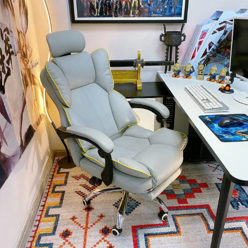 كرسي فاخر مع مسند للقدم .الكرسي بالكامل مصنوع من الفولاذ الصلب المقاوم للصدأ .الكرسي يتحمل الاوزان حتى 125 كيلو جرام .يحتوي على مساند للذراعين قابلة للتعديل حسب الرغبة .حشو من الاسفنج عالي الكثافة يعطي مزيدا من الراحة اثناء الجلوس لفترات طويلة . الكرسي مكسو بطبقة من الجلد المقاوم للتمزق والحرارة وايضا سهل التنظيف .