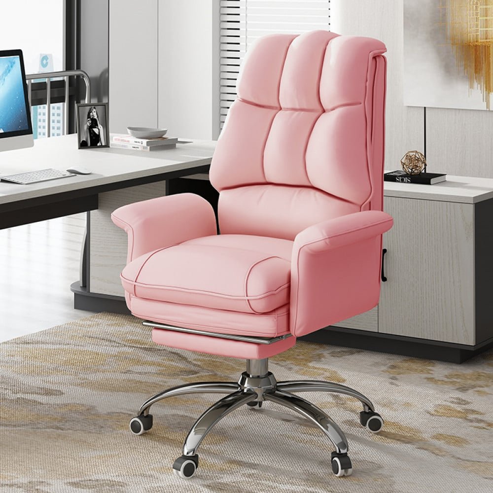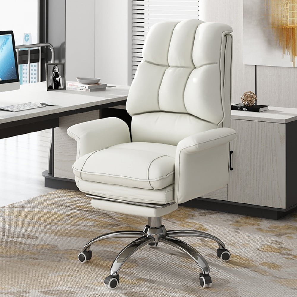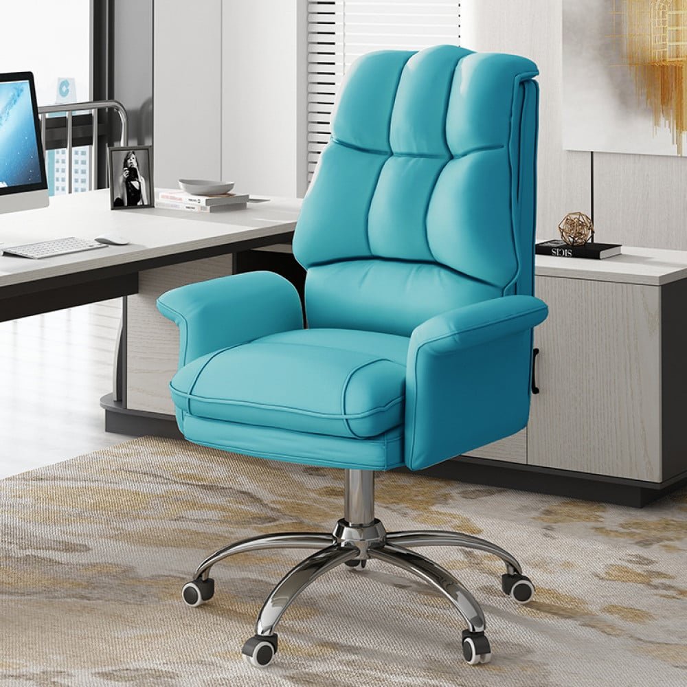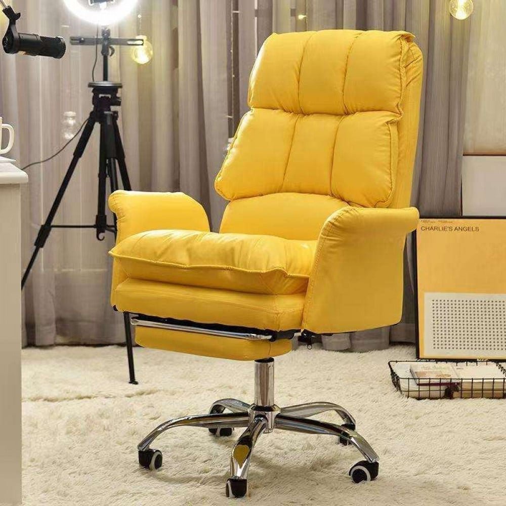 تم تصميم كرسي المكتب لتوفير أقصى درجات الراحة والدعم. تتميز بحشوة إسفنجية عالية الكثافة توفر راحة فائقة، ومسند قدم مدمج لمزيد من الدعم، وإرتفاع قابل للتعديل ومواضع مائلة لتناسب احتياجاتك. الكرسي مصنوع من أجود الخامات الجلدية والمعدنية، ويتوفر باللون البيج والأسود والاصفر والازرق ، ويبدو رائعًا في أي منزل او مكتب . بفضل تصميمه المريح، يوفر هذا الكرسي أقصى درجات الراحة والدعم في أي بيئة عملية.