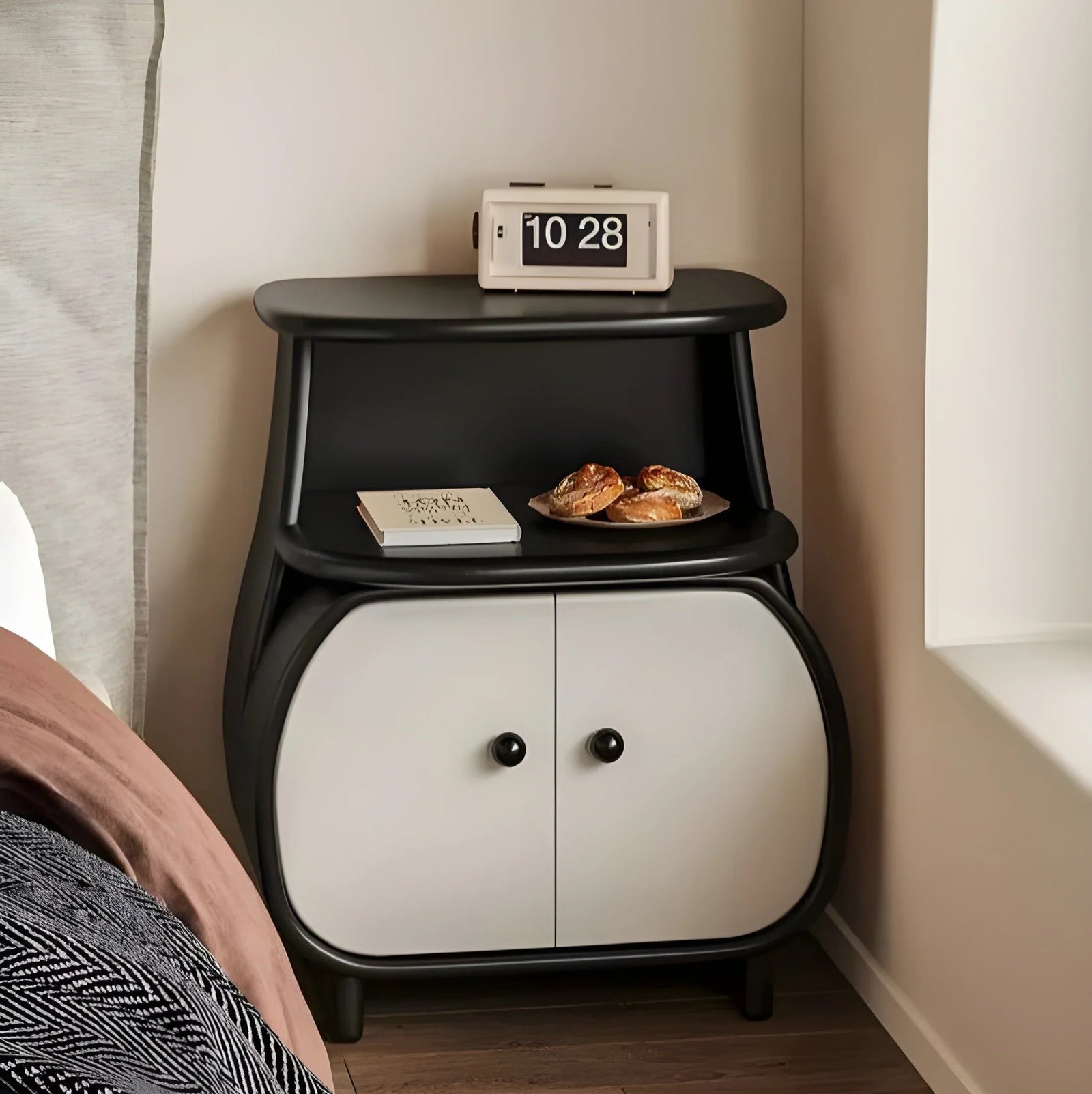 طاولة جانبية بتصميم عصري مبتكر تجمع بين الأناقة والوظيفة، تتميز بشكلها الانسيابي ولونيها الدافئ اللذين يضفيان لمسة مميزة على غرفة النوم أو المعيشة. مزودة برف علوي ومساحة تخزين مغلقة بأبواب أنيقة لتسهيل تنظيم الكتب، الإكسسوارات أو المستلزمات اليومية. قطعة تجمع الجمال العملي مع الذوق الحديث لتكمل أناقة منزلك.