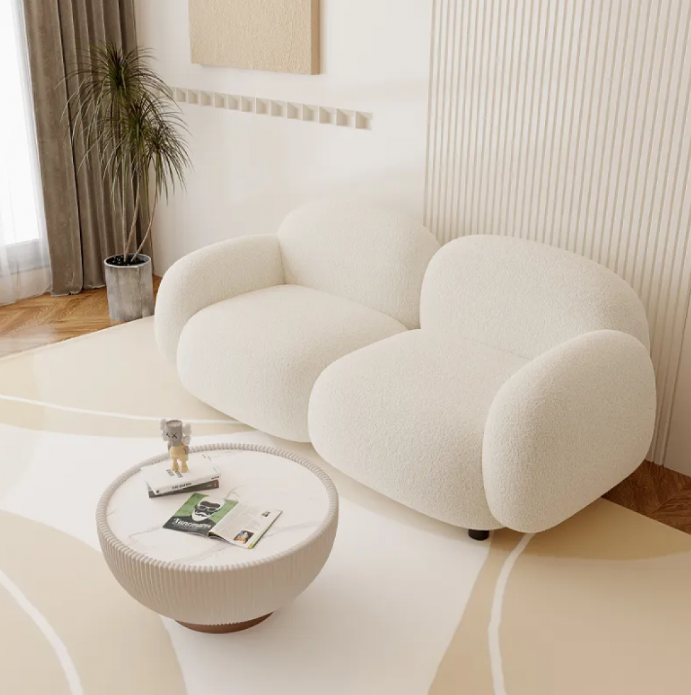 الخامات: خشب صلب – قماش بوكلية عالي الجودة